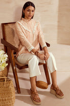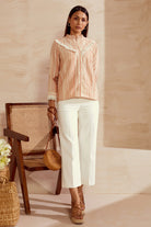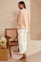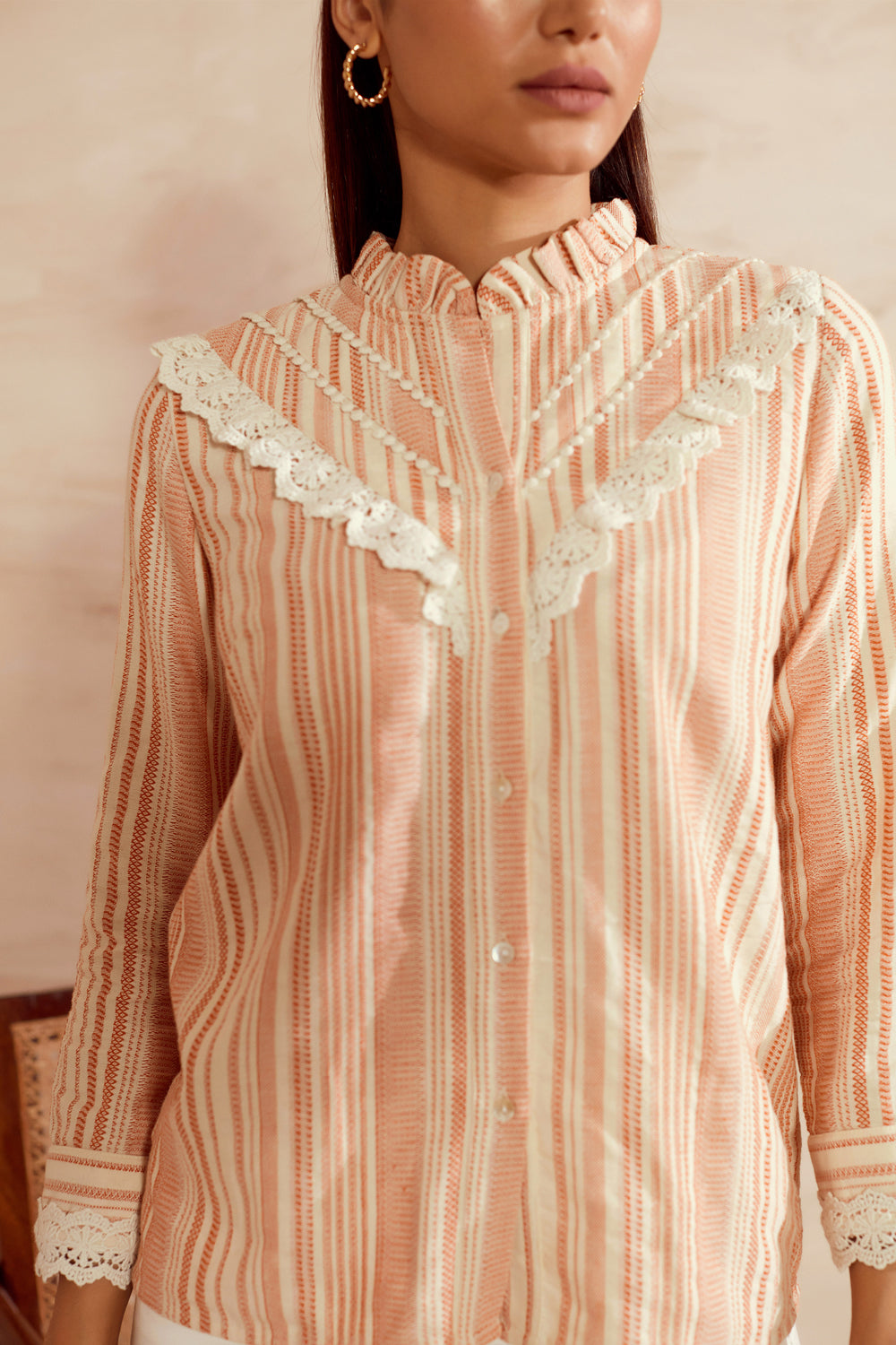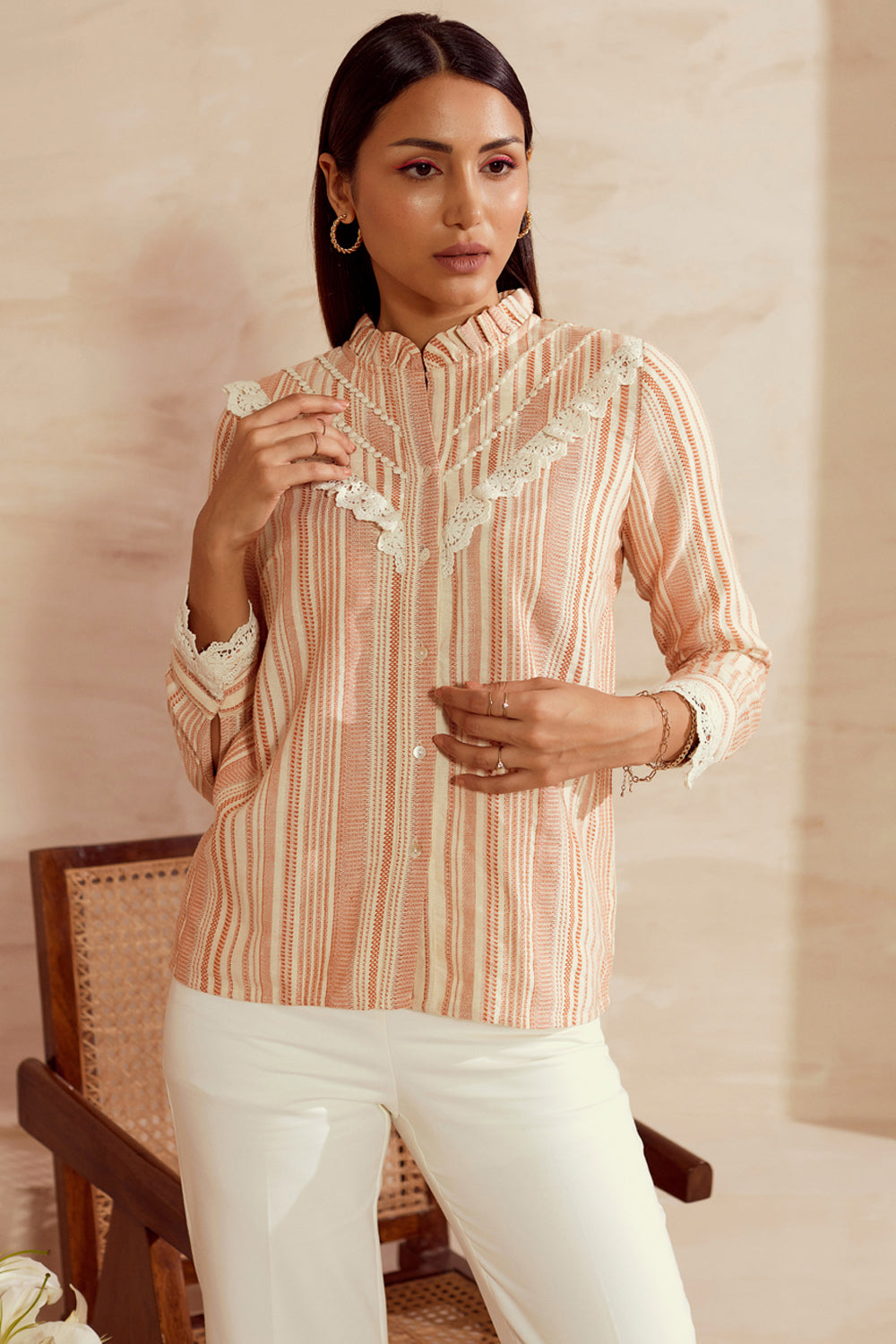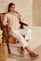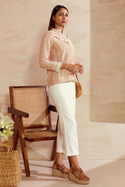 From its structured sleeves to lace detailed finish, this stunning blouse is a study in dainty details. Pair it with distressed denims for a look that is both comfortable and effortless.