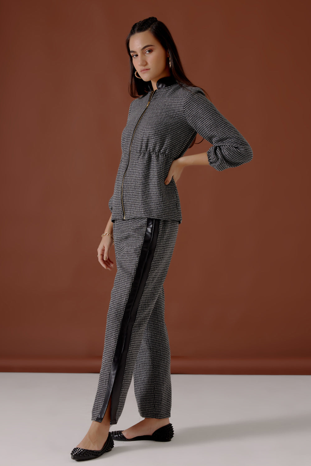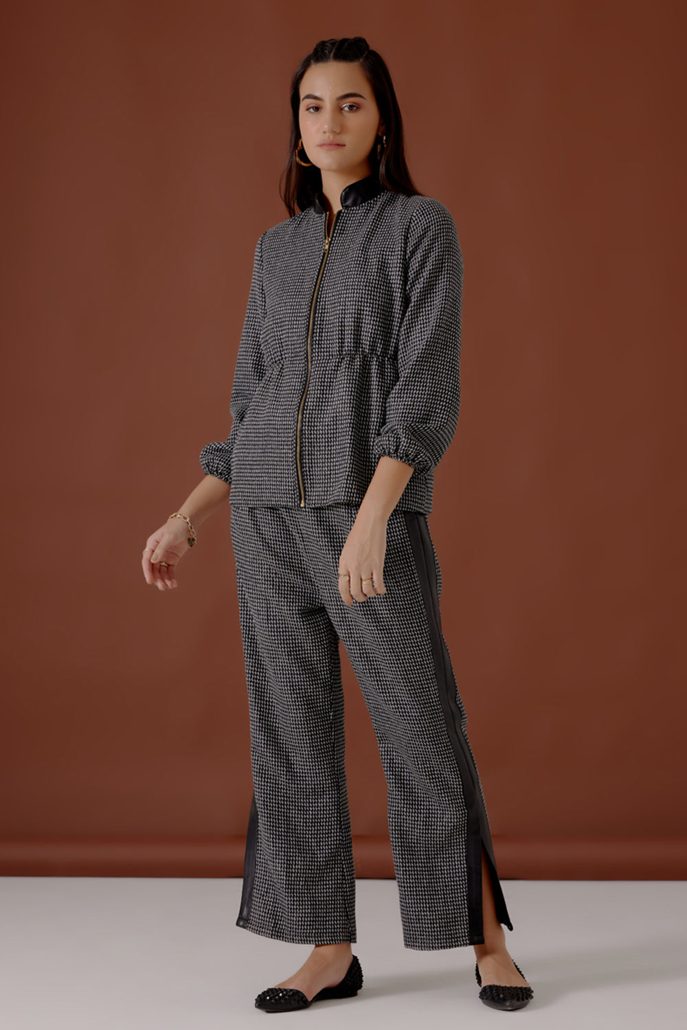 Effortless style, great attention to detail, fit, and fabric is unsurpassed. The faux leather trimmed bomber jacket and bottom makes this coord set an all time classic.