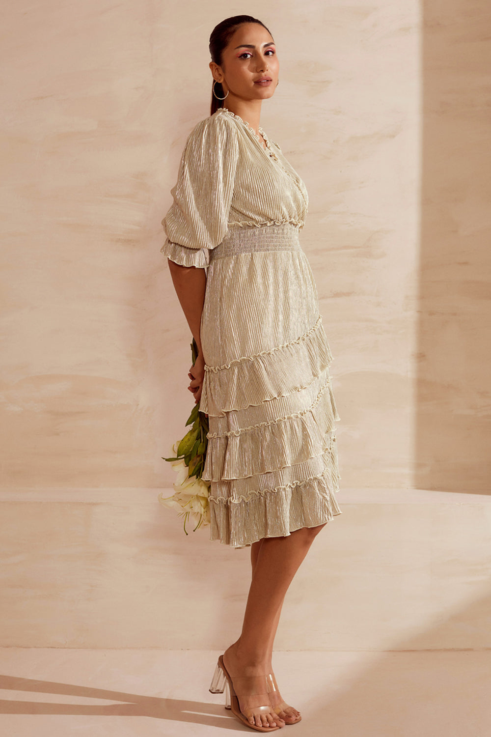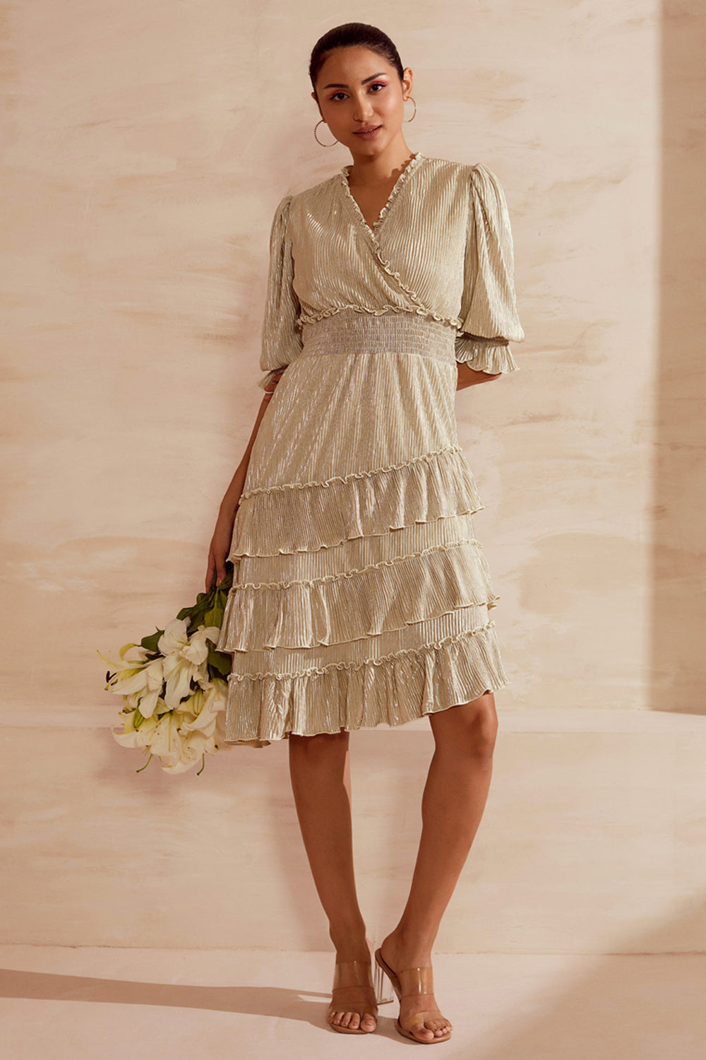 Metallic Pleated Party Stopper Dress