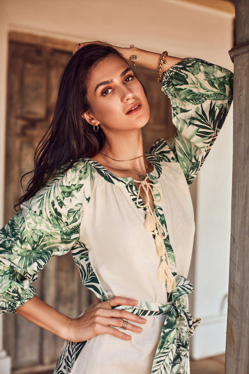 With a relaxed fit and playful print -imparts an air of wear-anywhere elegance no matter how you style it.