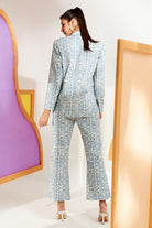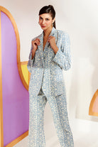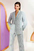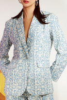 This set is made in printed broderie includes button front blazer and fully lined with sustainable bamboo cotton.