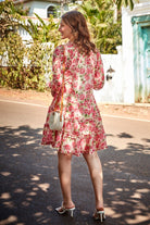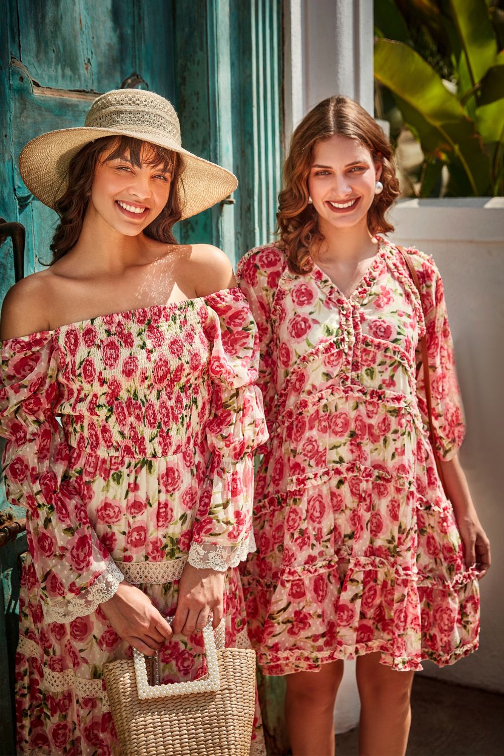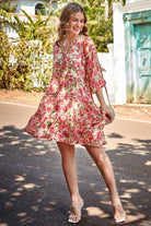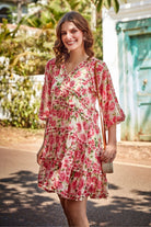 One of our bestselling dresses ever. A vision of feminine romance and sophisticated ease, ruffled details fall gracefully, swaying gently as you walk ,with a breezy sleeve and v -neckline.