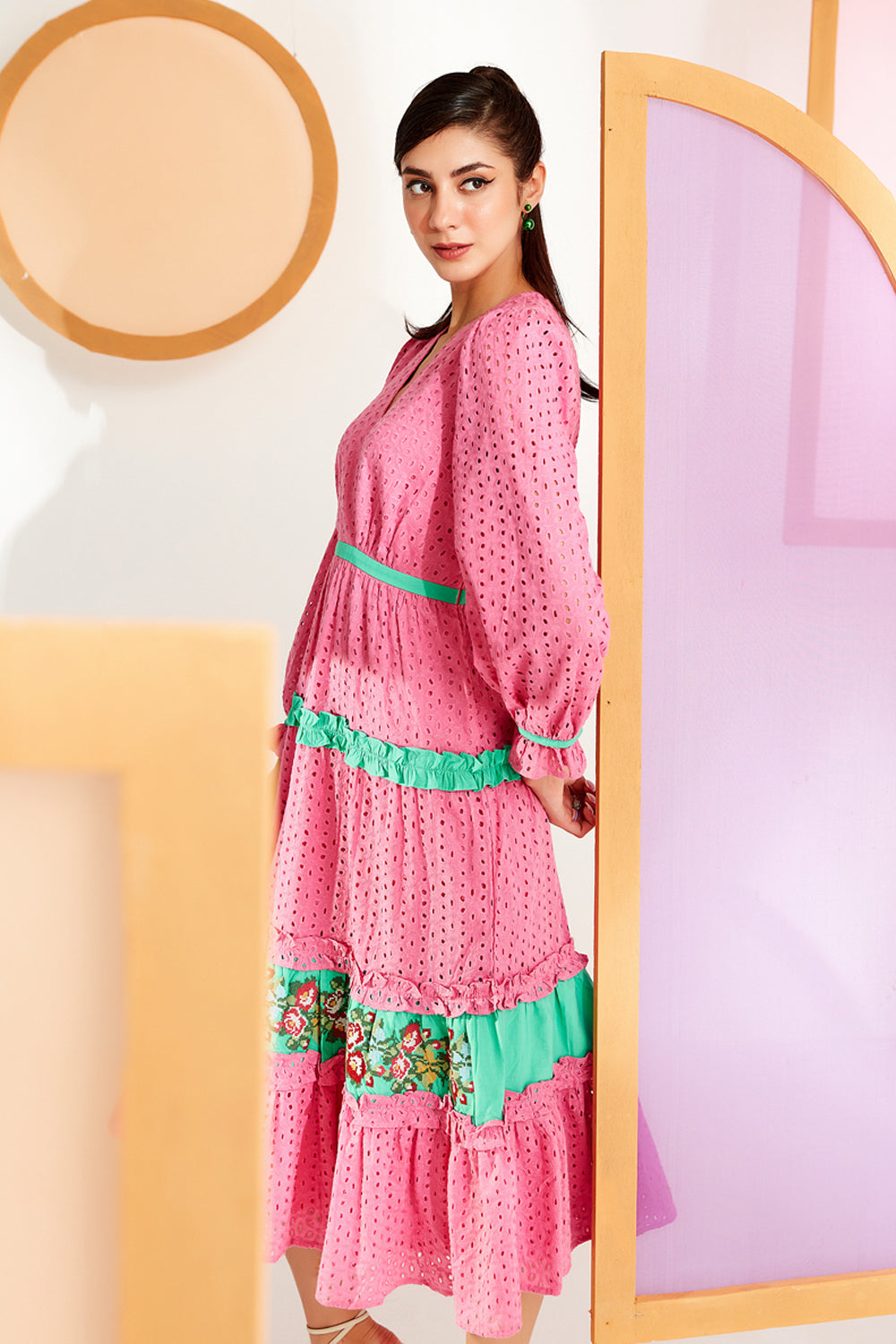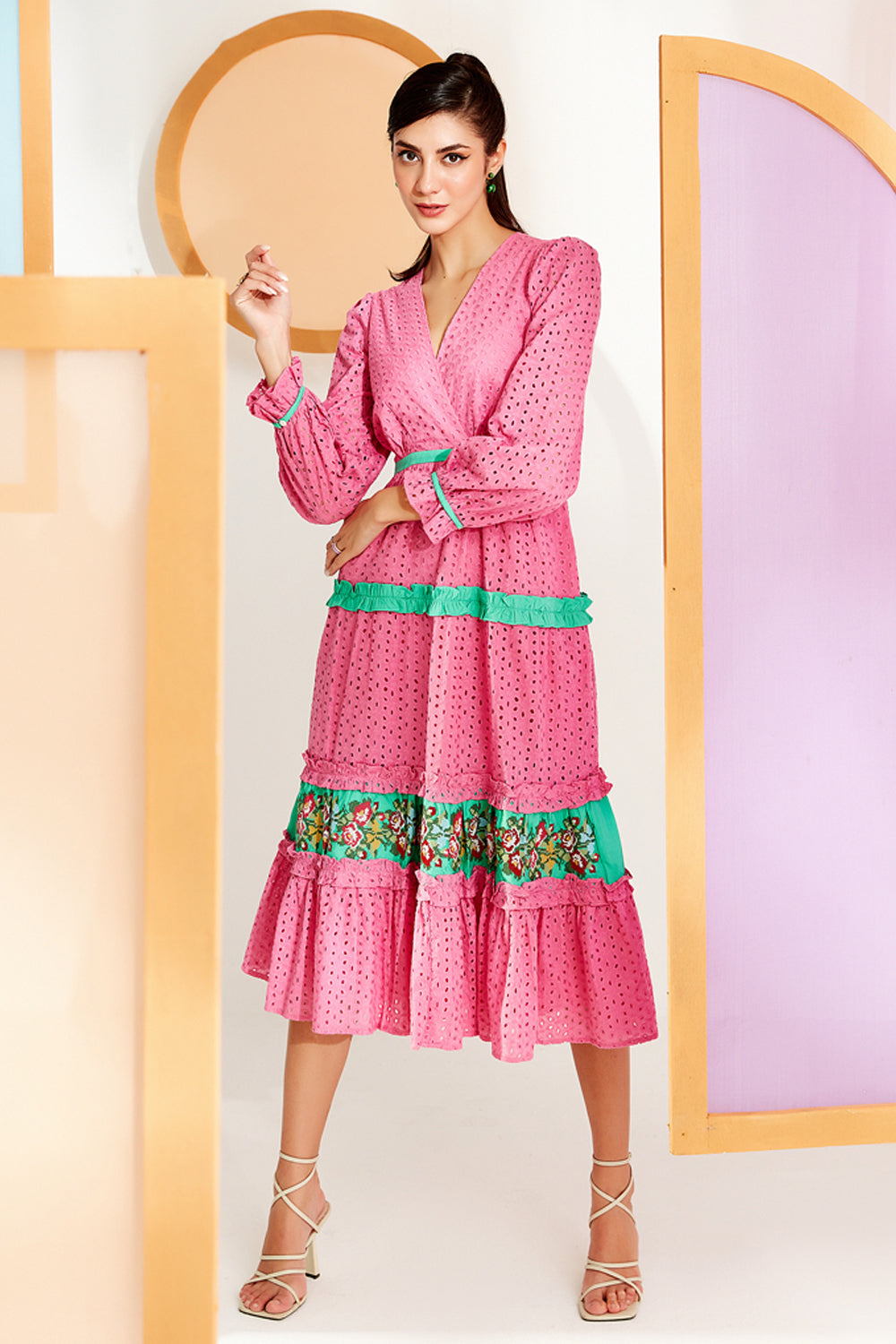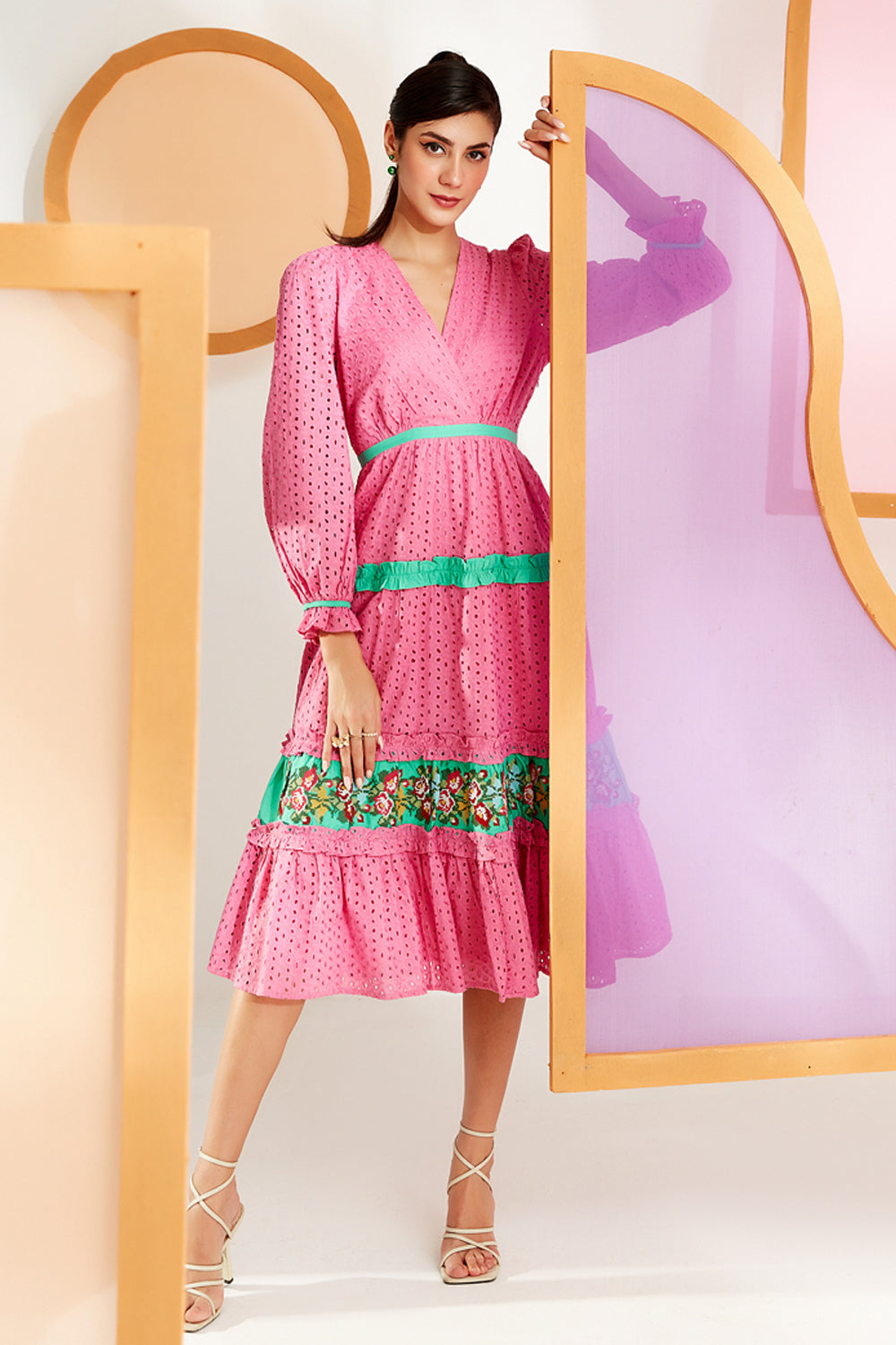 This midi is crafted in cotton eyelet lace.Enchanting multi-colour embroidery at the bottom. Featuring a flowy fit ensures this dress will be warm weather favourite. It brings a hit of drama to lounging in your garden or dining with your loved ones.