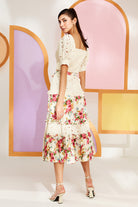 This beautifully crafted in soft cotton. Printed broderie and cutwork embroidered layered skirt. A Boho-Chic exclusive.