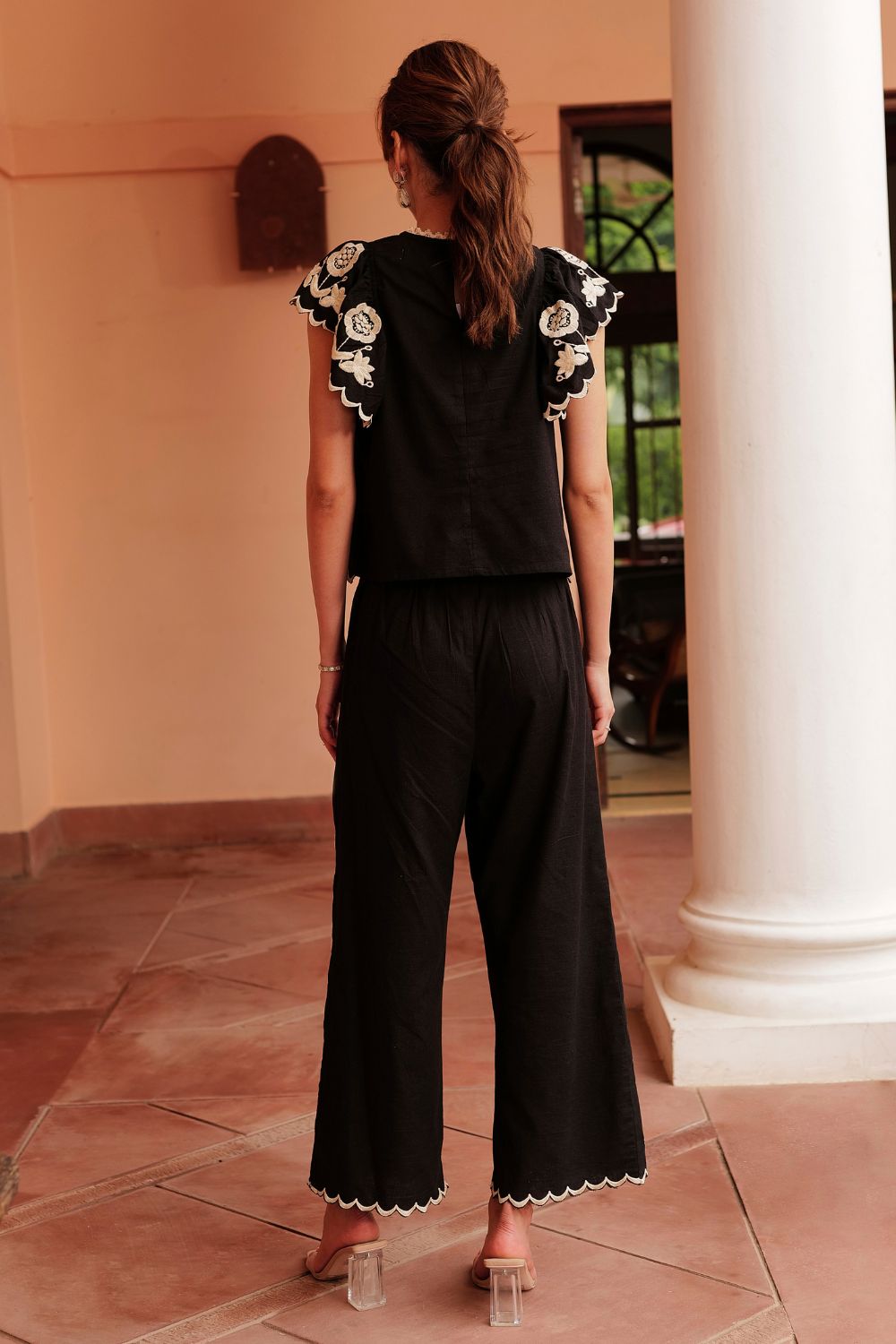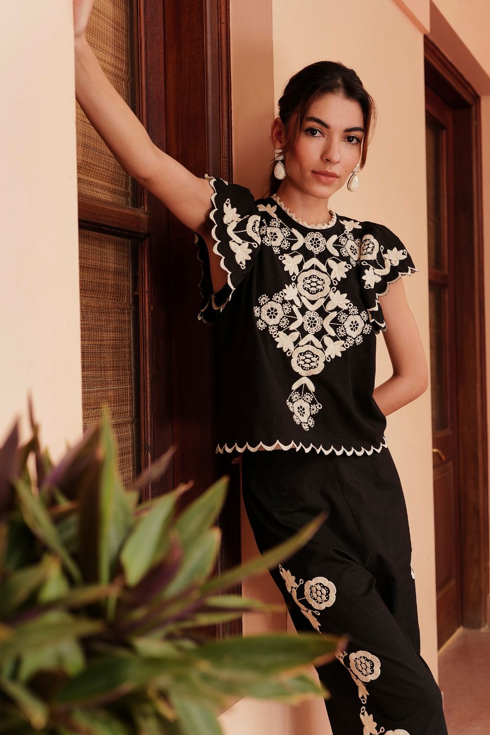 Effortless fit and uber classy. The creme embroidery all over the pant makes this piece extraordinary and a go to silhouette for any formal ocassion. A boho-chic exclusive.