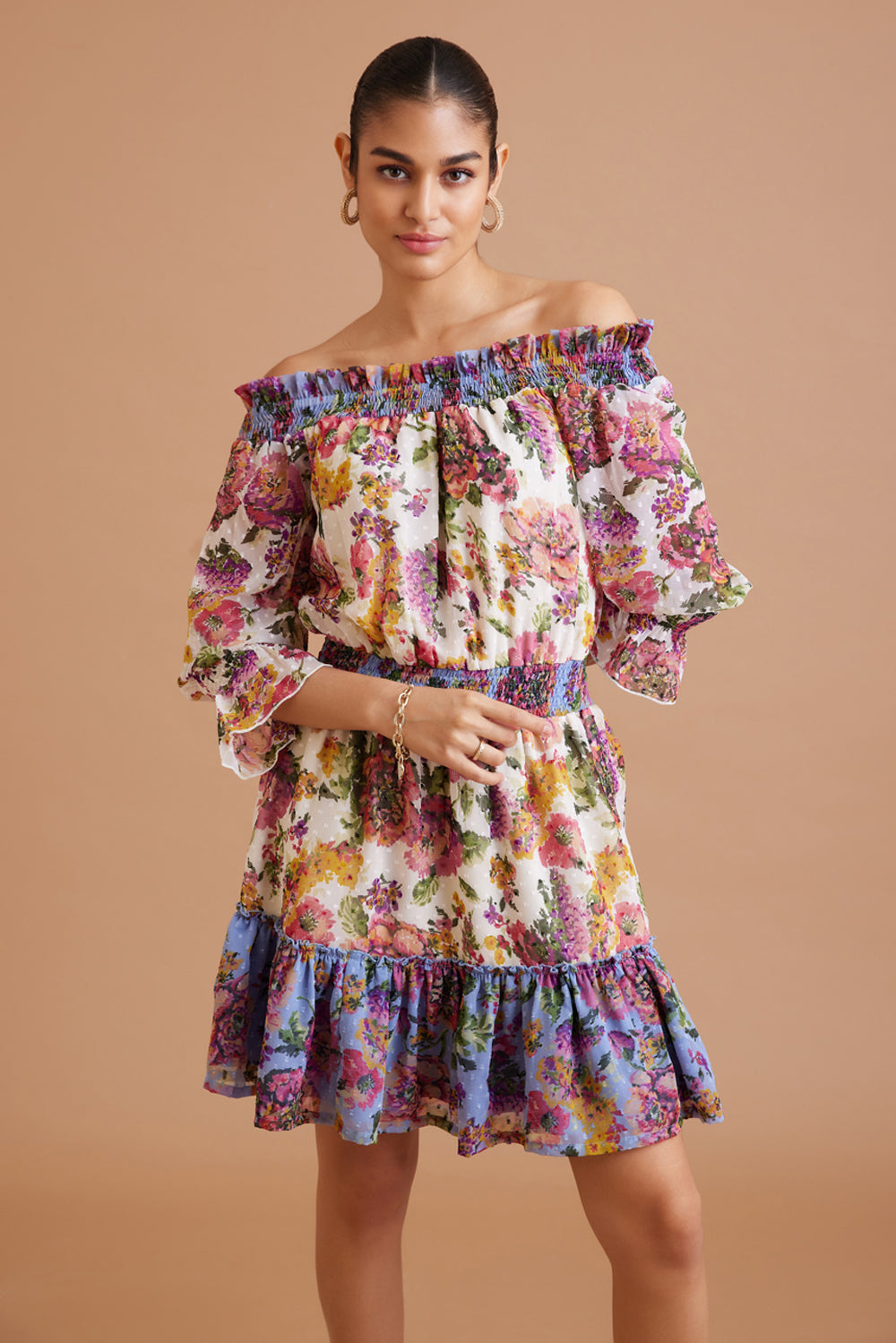 Broderie Anglaise Off Shoulder Smocked Blouse