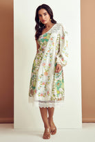Redefined and flattering,Structured yet delicate .Beautifully crafted pastel embroidery and abundance of lace, mixed print makes this dress a heads turning statement