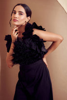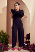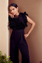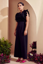 Feather Trimmed Ruffled Jumpsuit