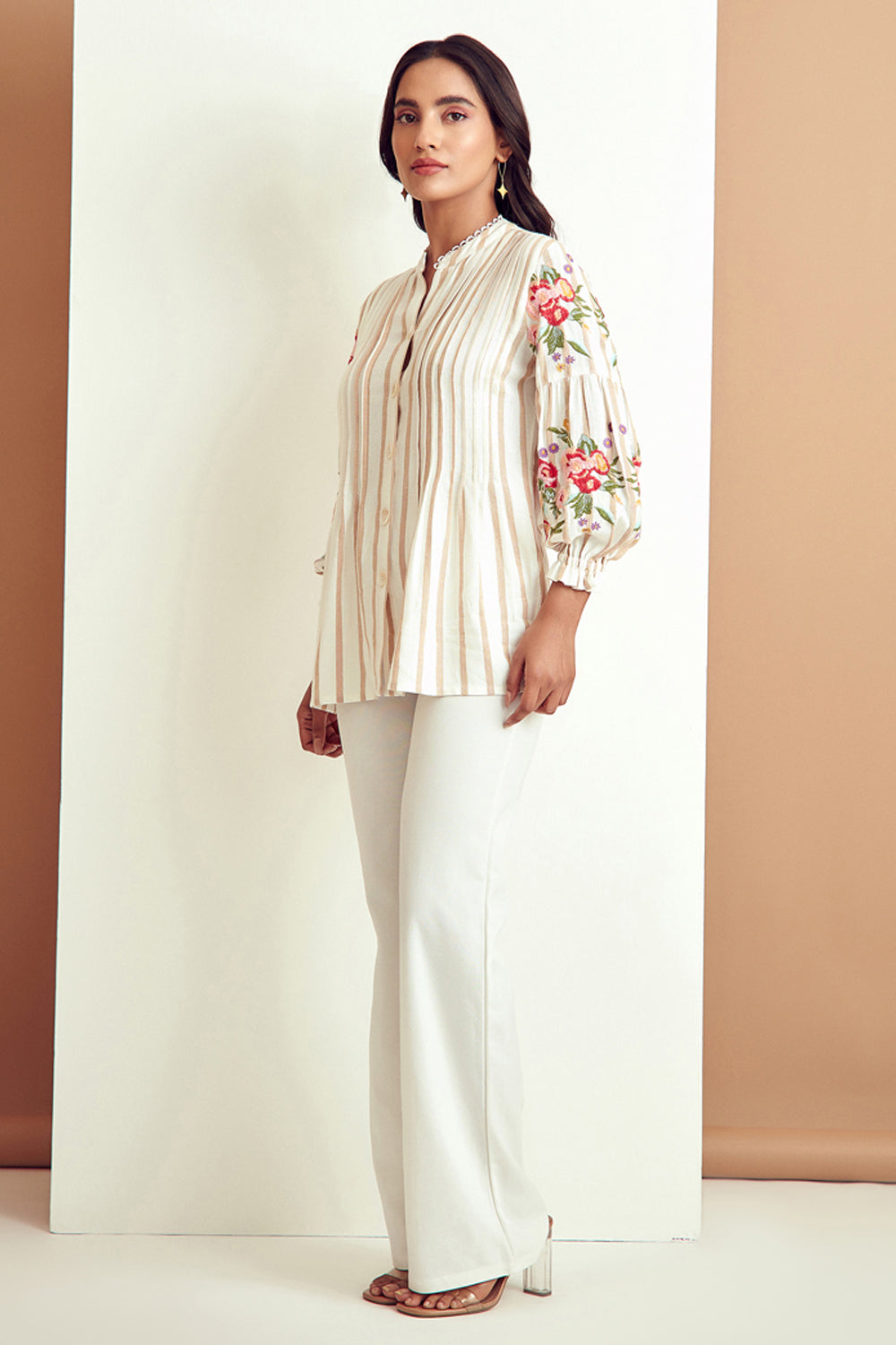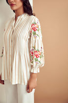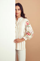 Invite a hint of springtime to your seasonal looks with this sweetly embroidered blouse.