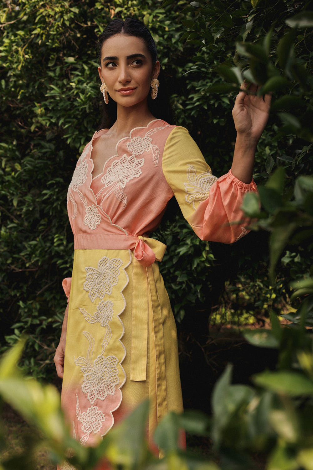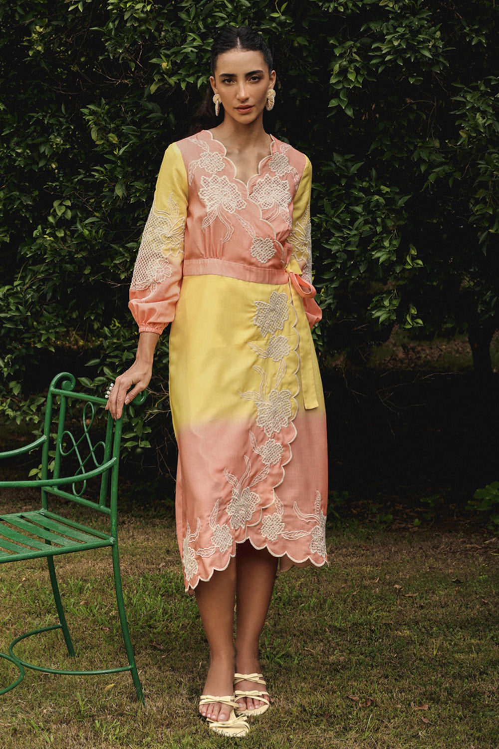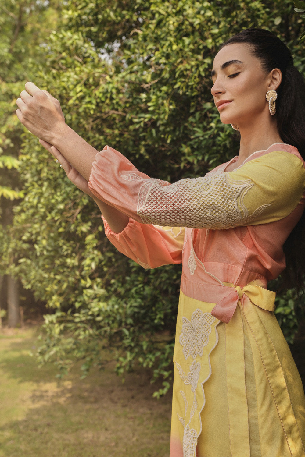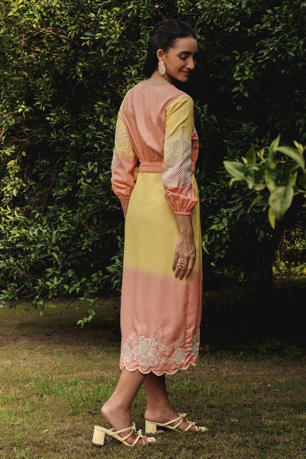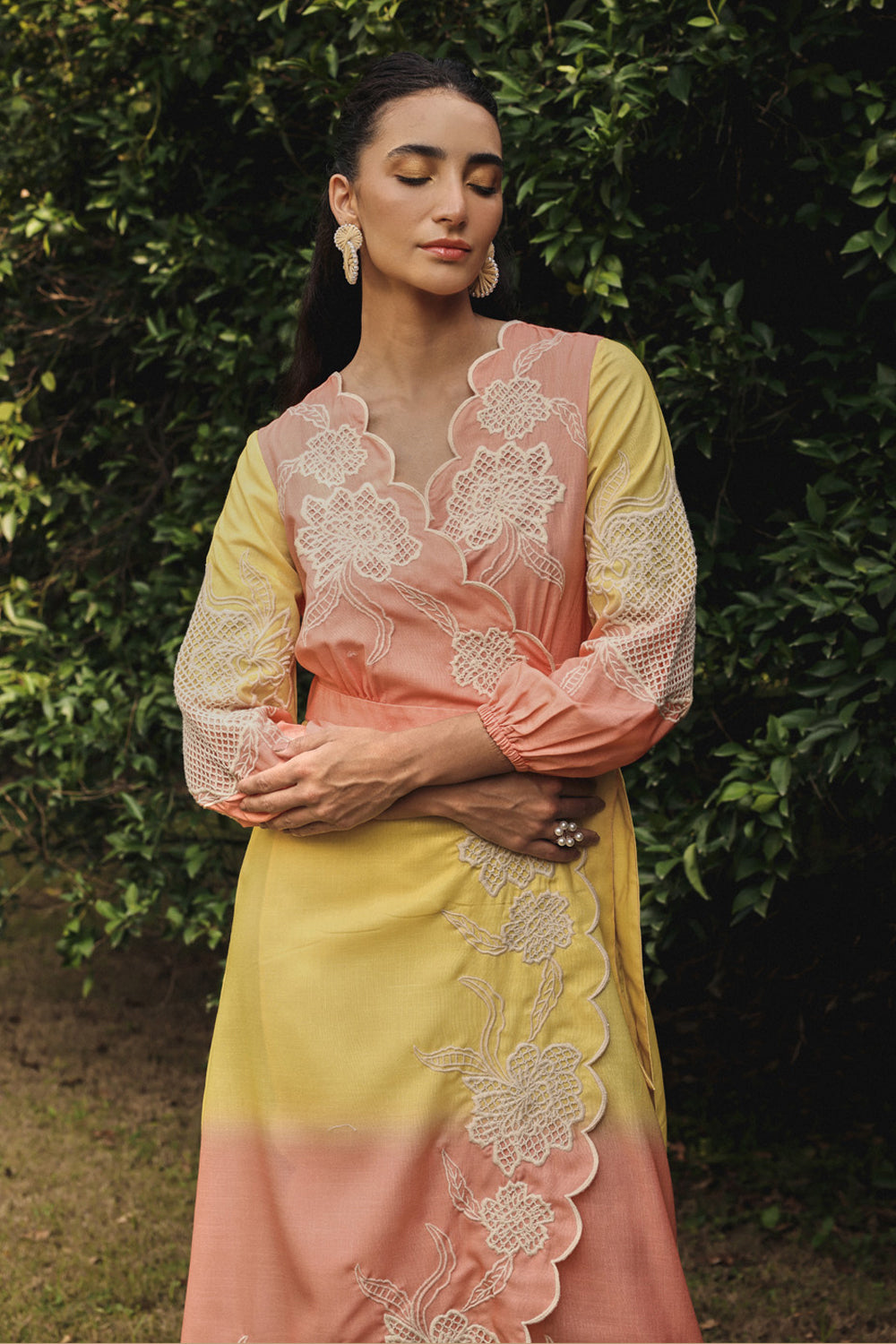 Flattering and elegant , crafted in premium ombre tencil fabric with honeycomb embroidery.