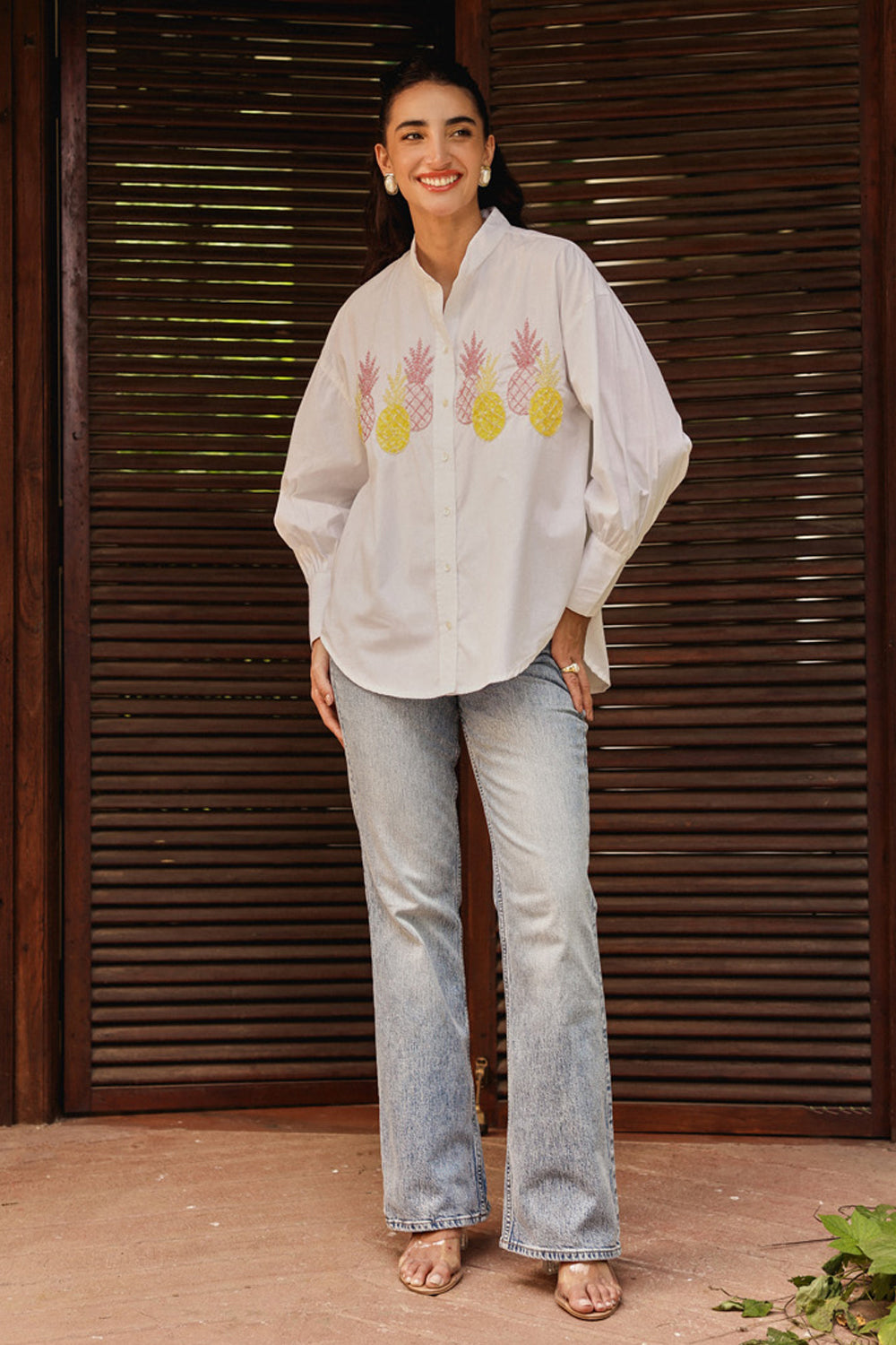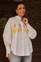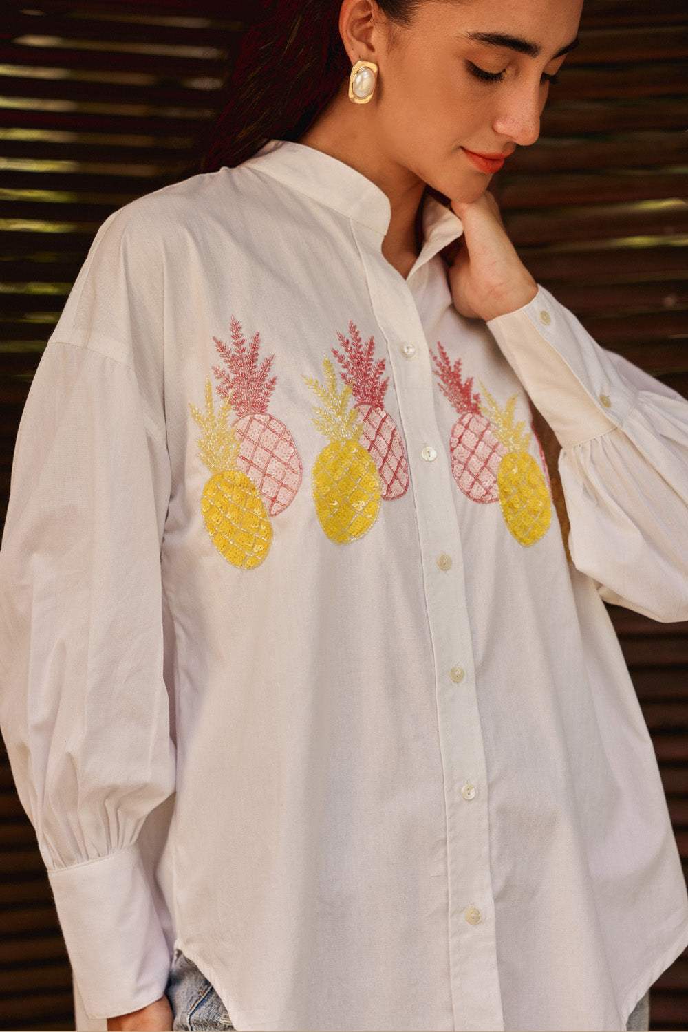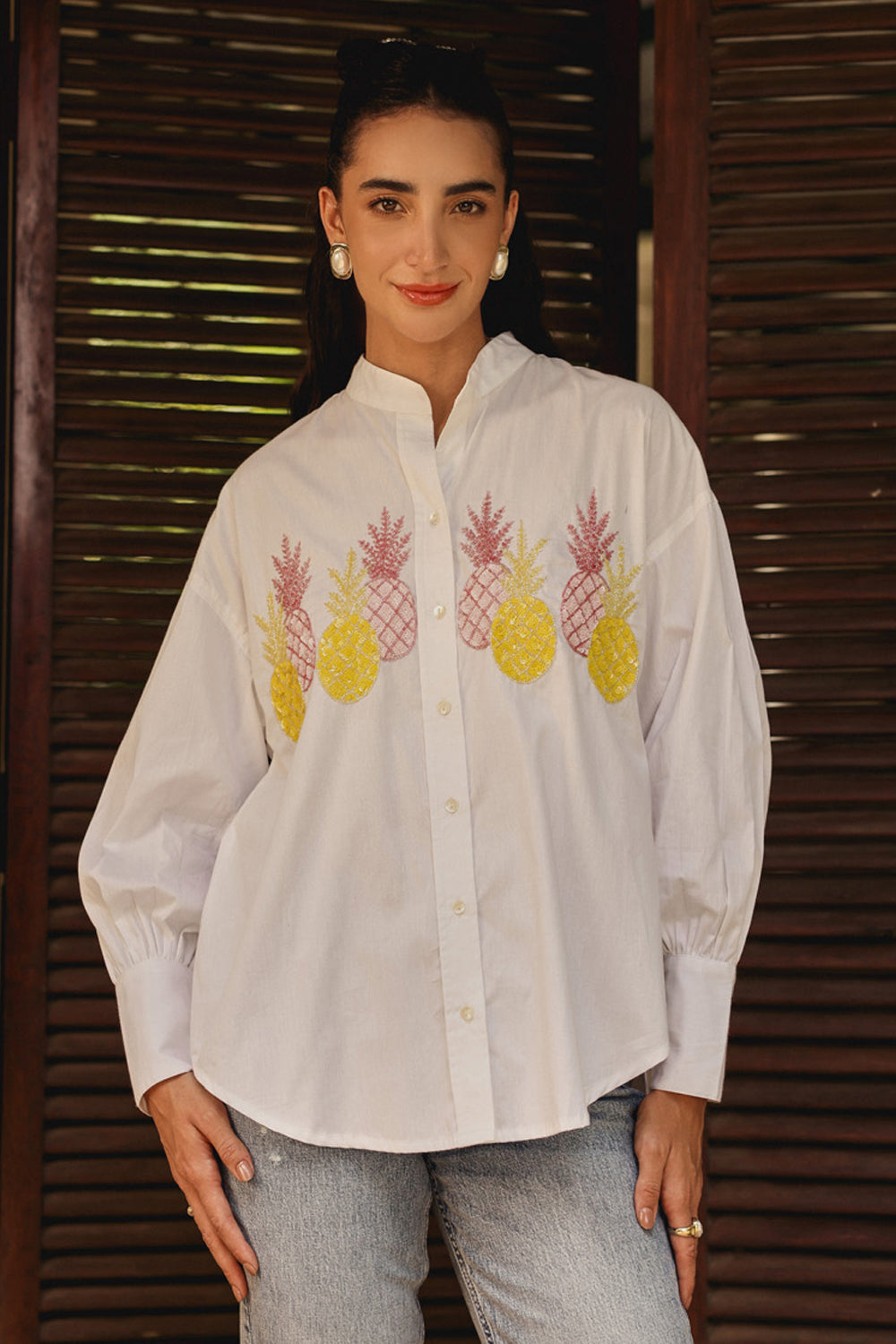 Quirky and trendy.Hand embellished sequinned blouse perfect for the hot summer time.