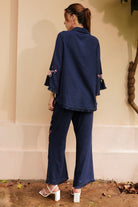 Redefined and flattering. Structured and yet delicate. Beautifully crafted in linen cross stich embroidery and lace detailing makes this blouse a heads turning statement.