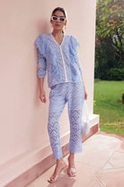 Your go to piece for creating meaningful moments of pure joy. The intricate blue and white broderie is here to make you feel chic yet cool with lace detailing and ruffle.