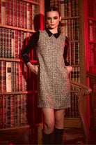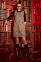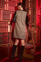 Trendy and Classic exquisite metallic tweed dress with faux leather trims,Pair it with knee high boots for that lounge or your best friends winter brunch.