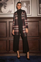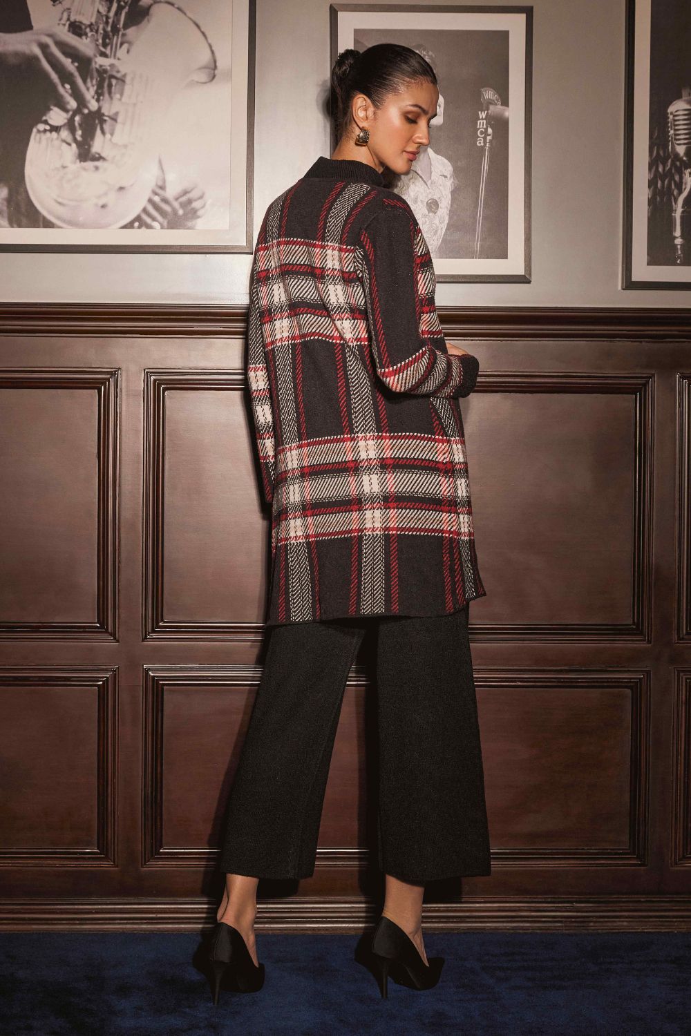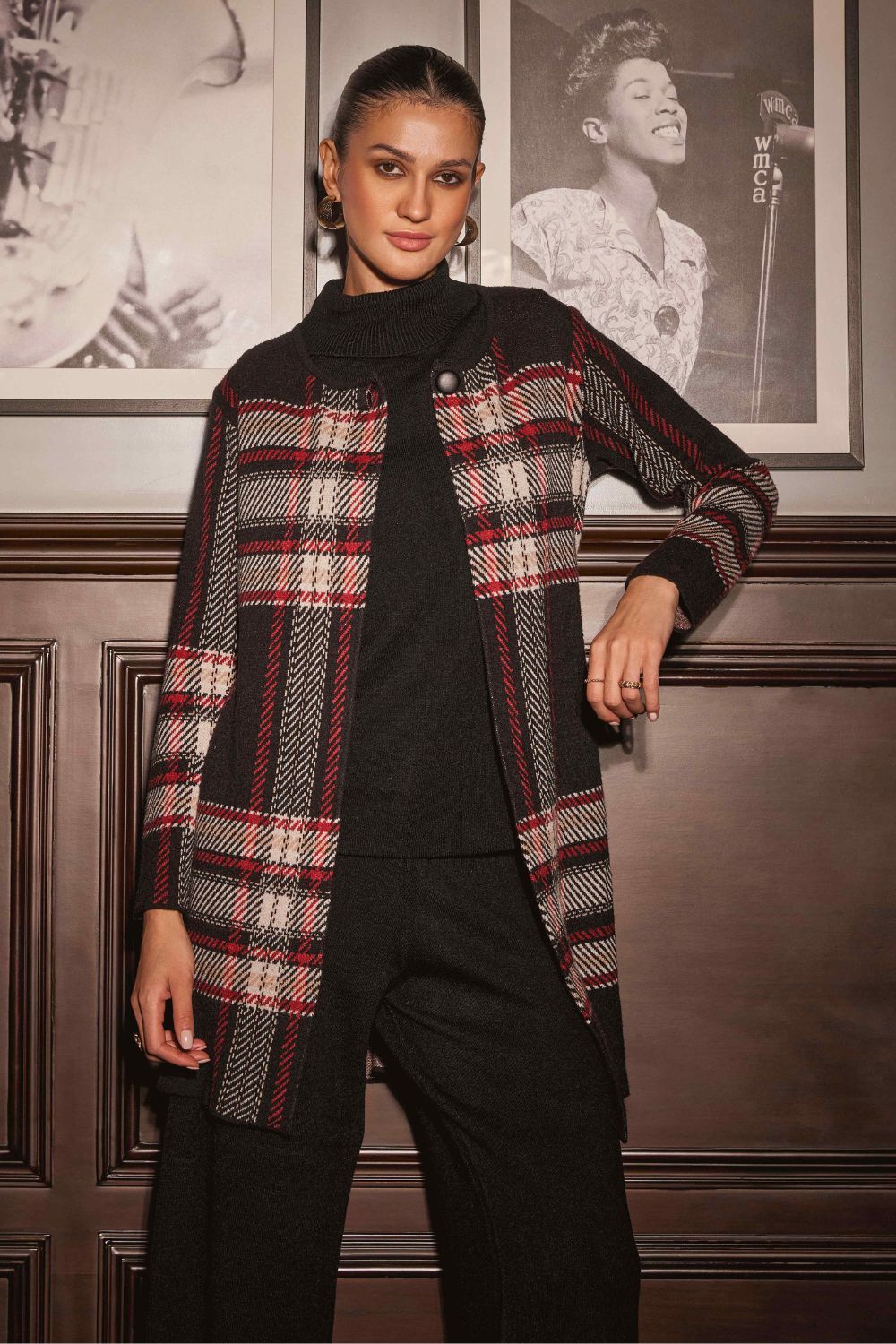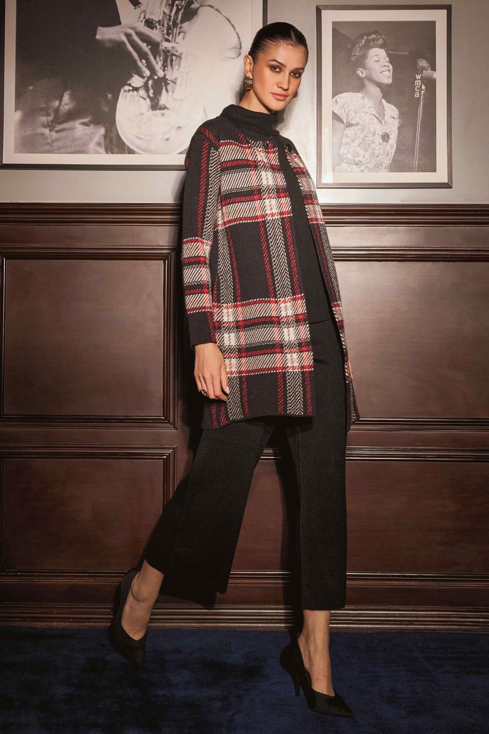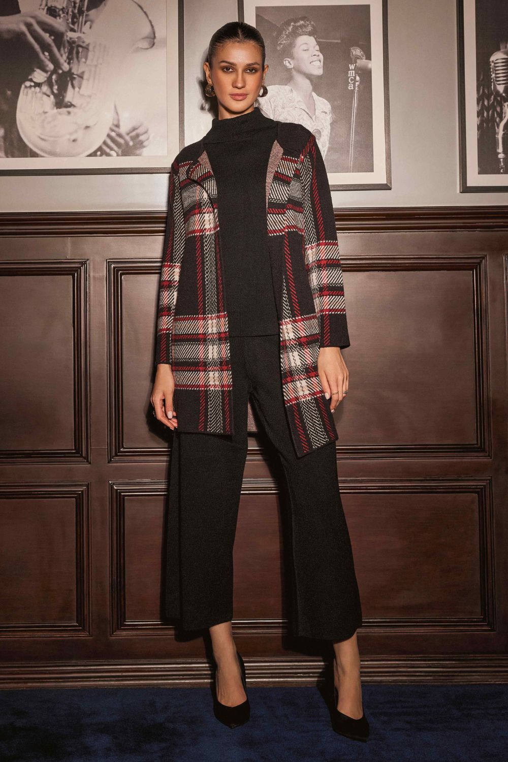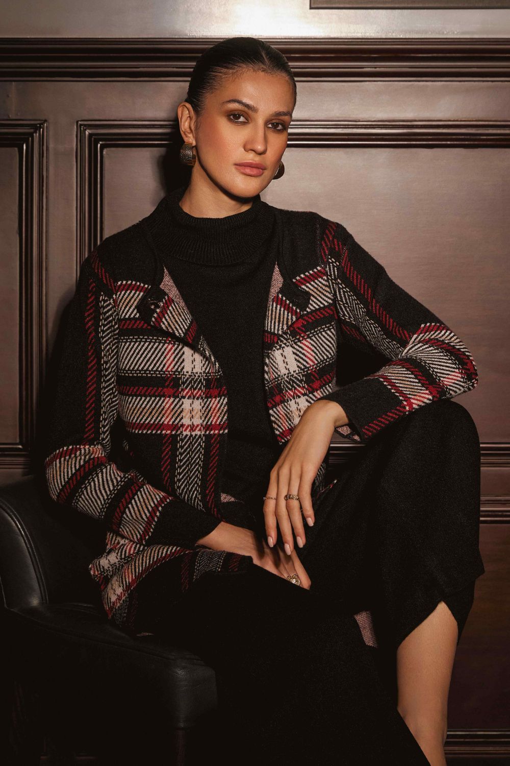Effortless style, great attention to detail, fit, and fabric is unsurpassed. The fur trimmed knit makes this three piece coord set an all time classic.