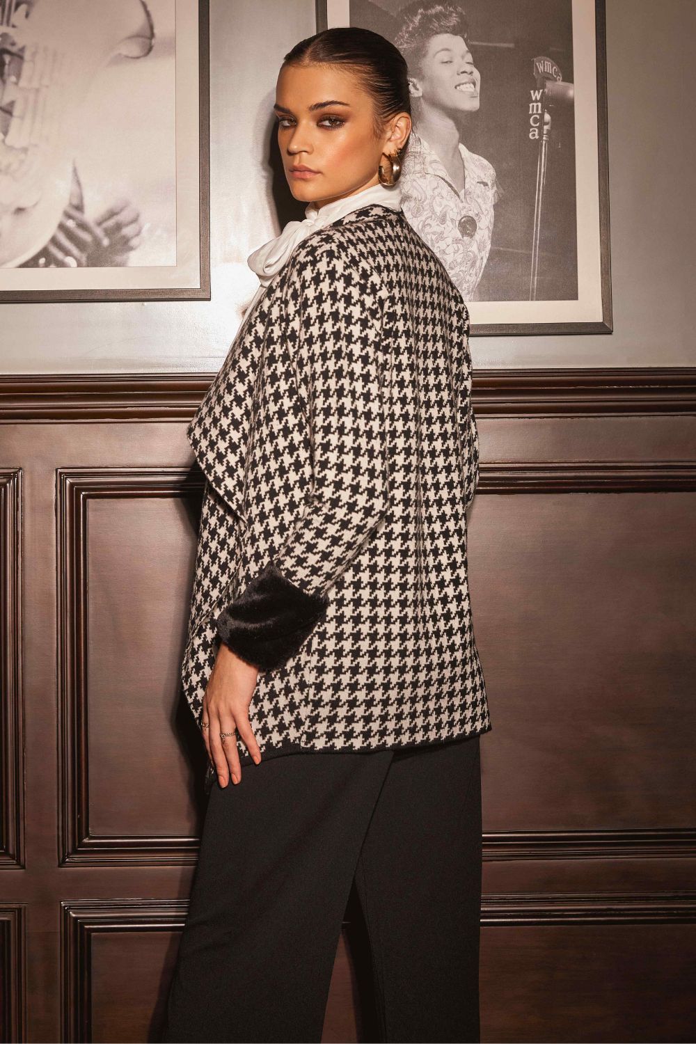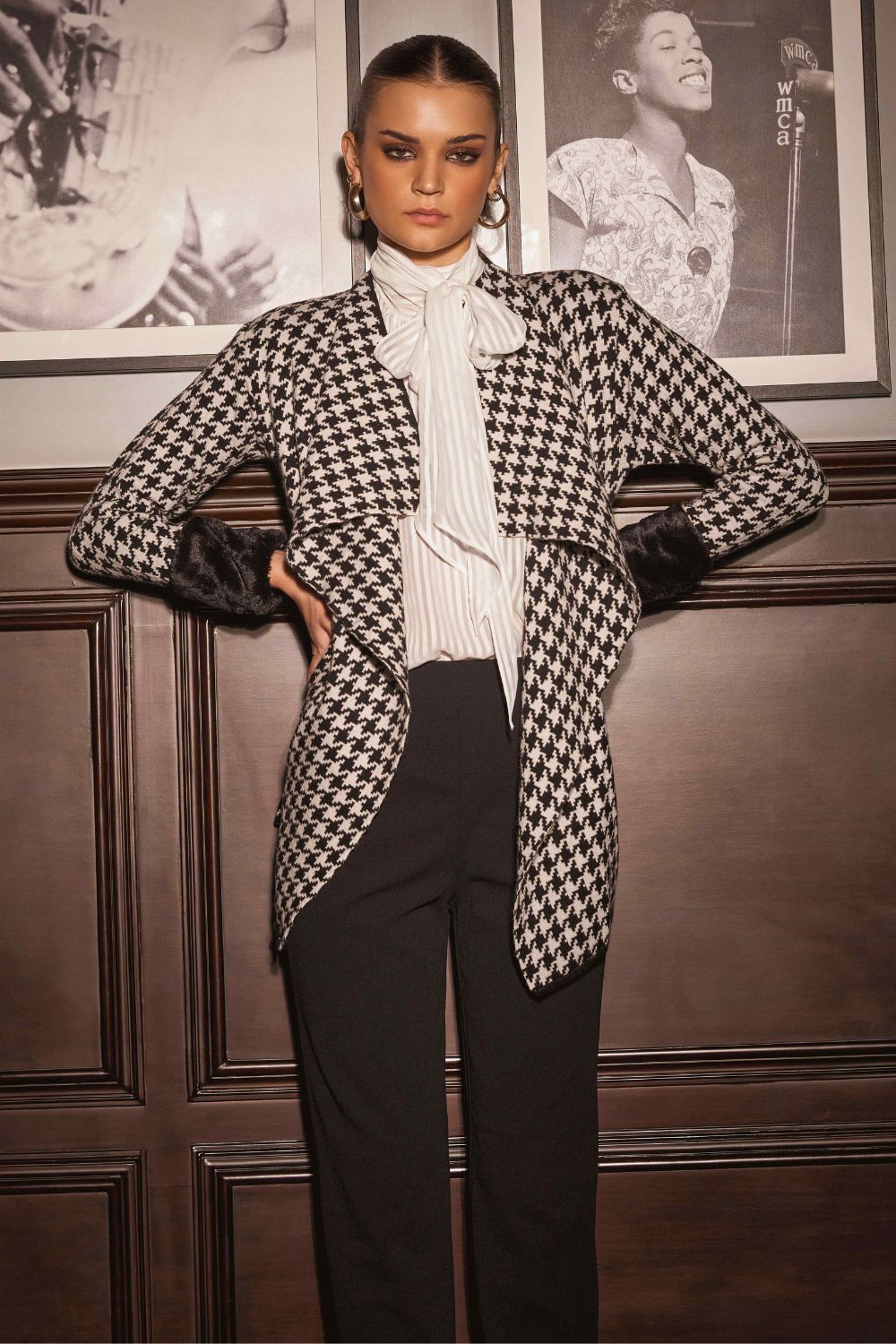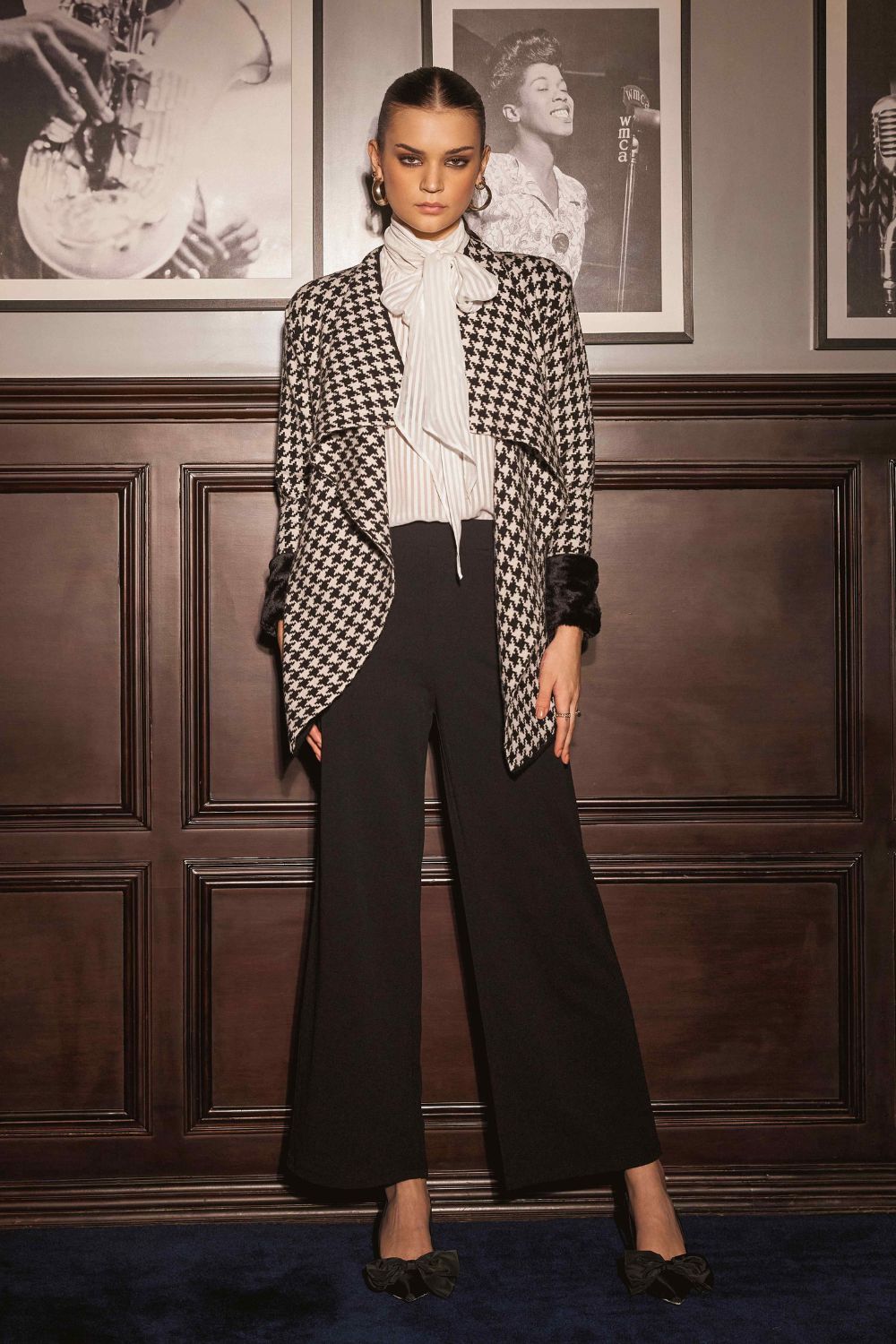 Effortless style, great attention to detail, fit, and fabric is unsurpassed. The fur trimmed knit makes this three piece top an all time classic.