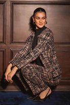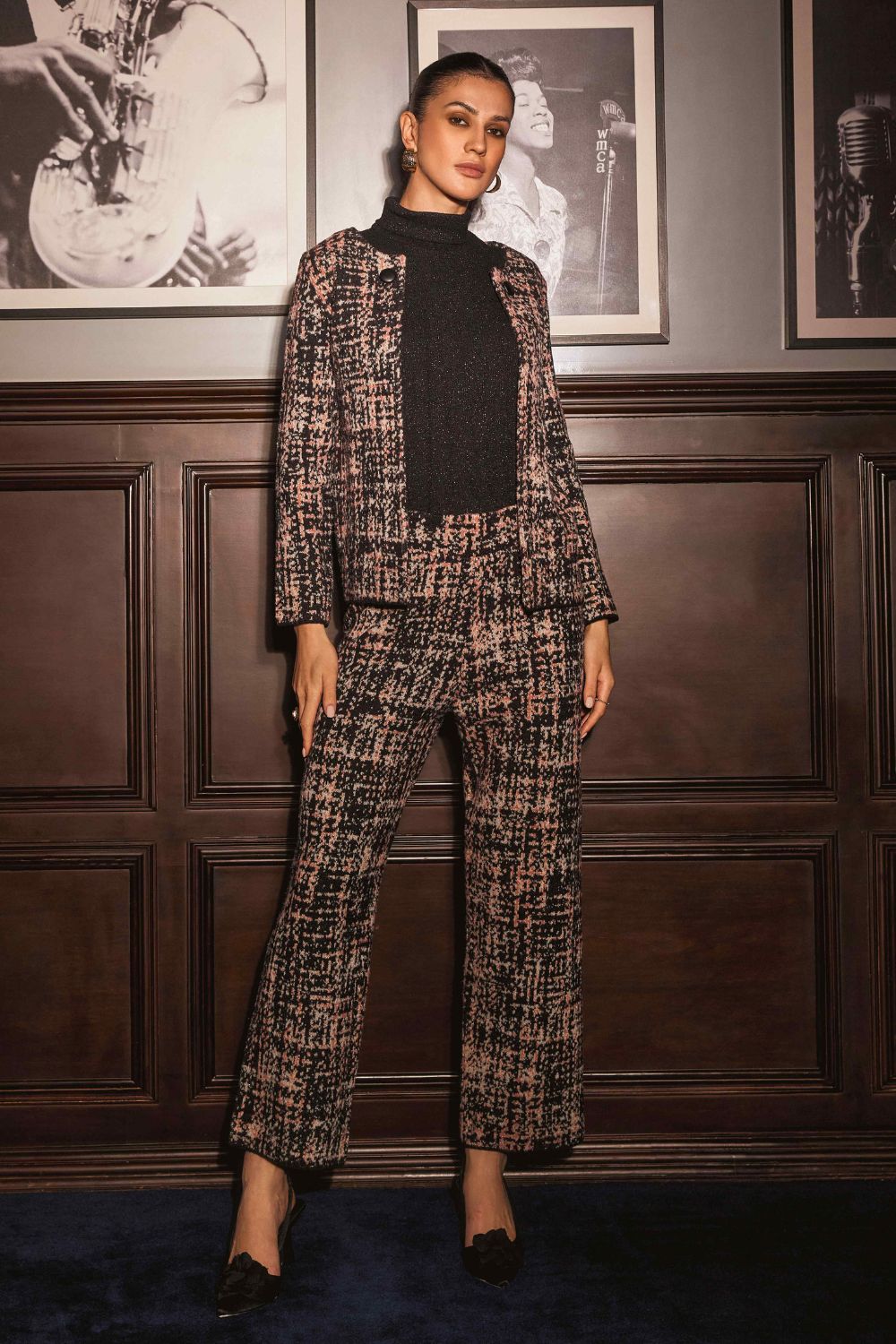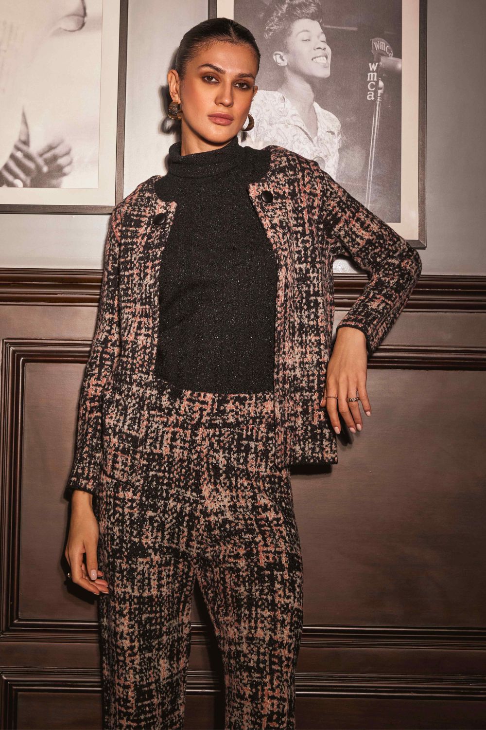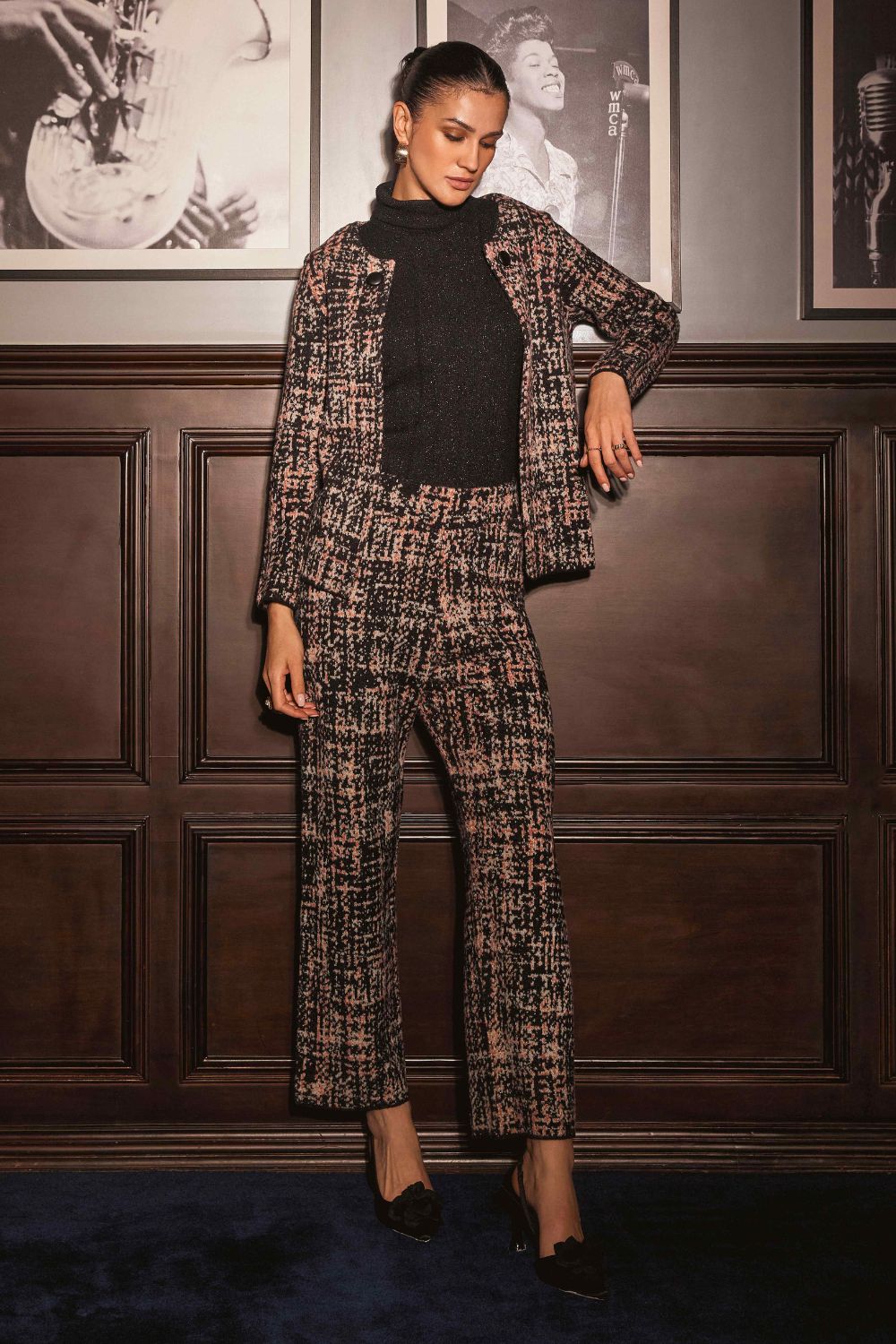 Effortless style, great attention to detail, fit, and fabric is unsurpassed. The fur trimmed knit makes this coord set an all time classic.
