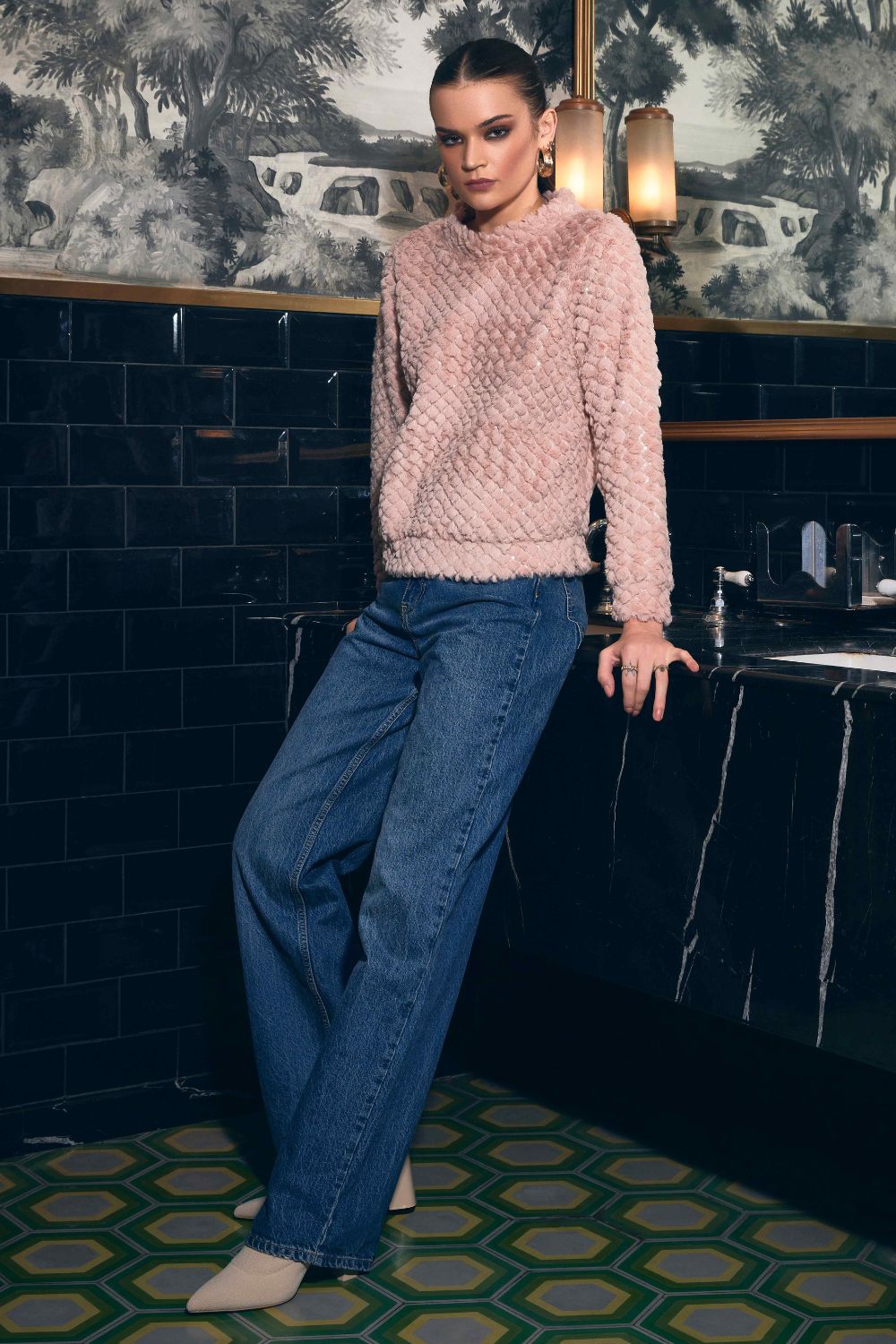 This jumper is crafted in soft pastel pink with side pockets for that casual feel. Best teamed with distressed denims.