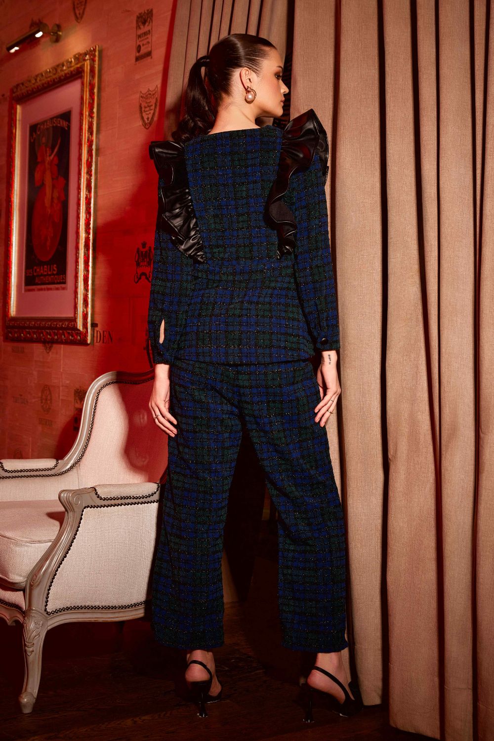 Effortless style, great attention to detail, fit, and fabric is unsurpassed. The faux leather ruffled jacket and bottom makes this coord set an all time classic.
