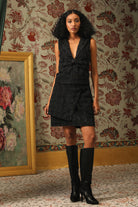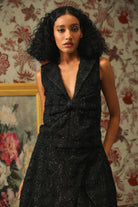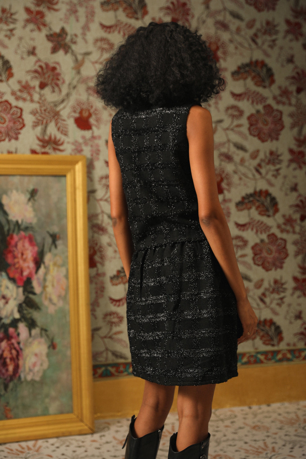 Waistcoat Crafted in metallic tweed with a big bow in the front yok, makes this ensemble perfect for a winter date or an event ready ensemble.