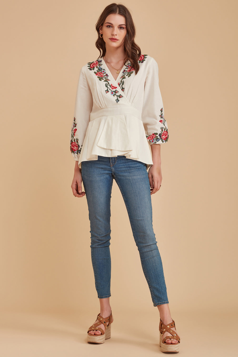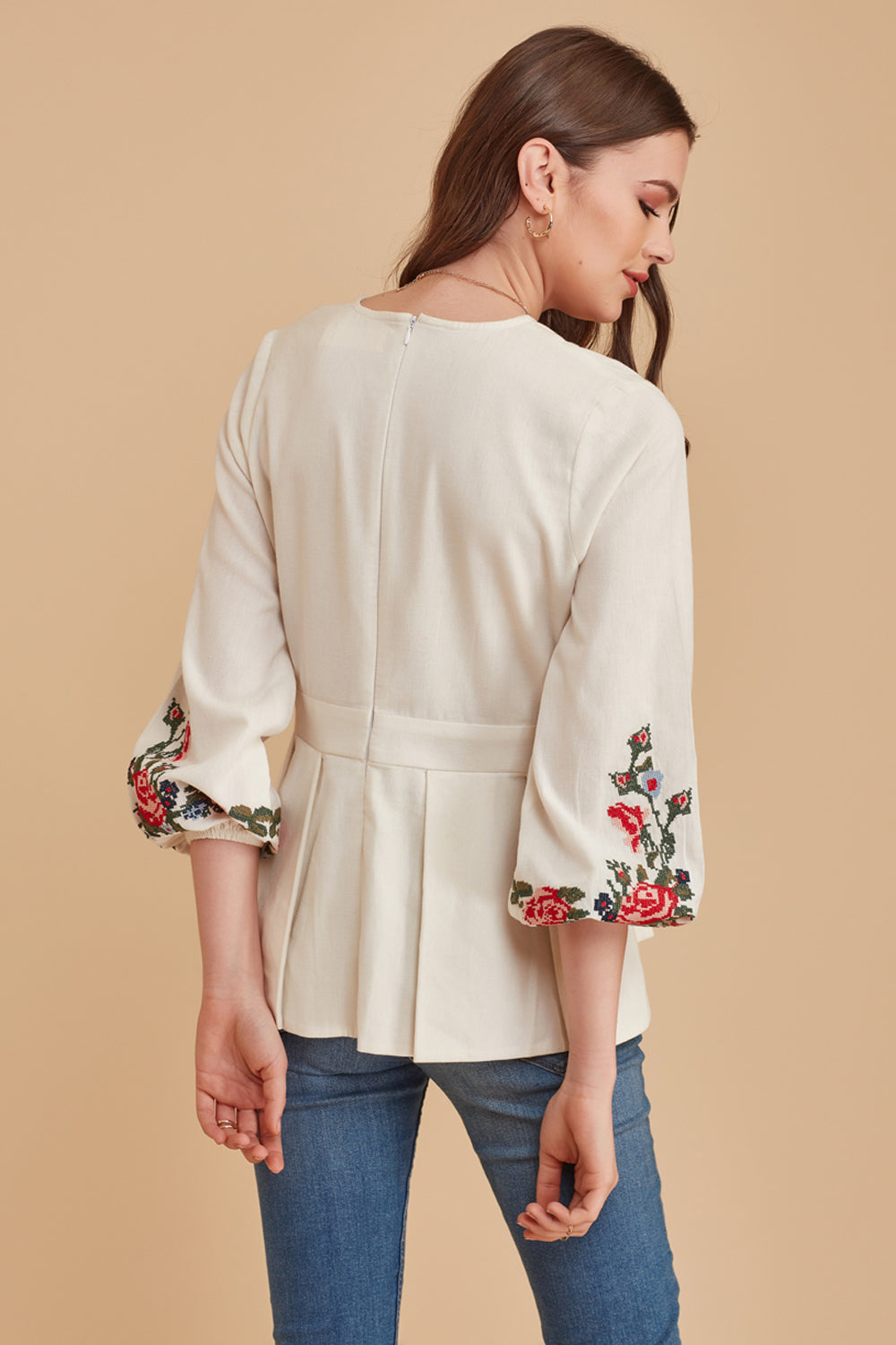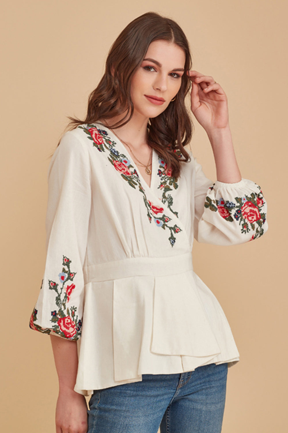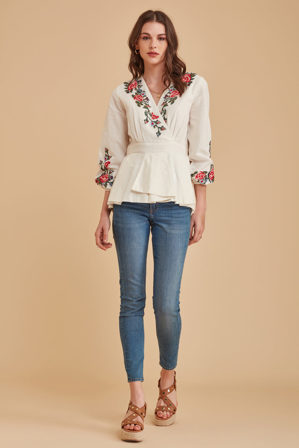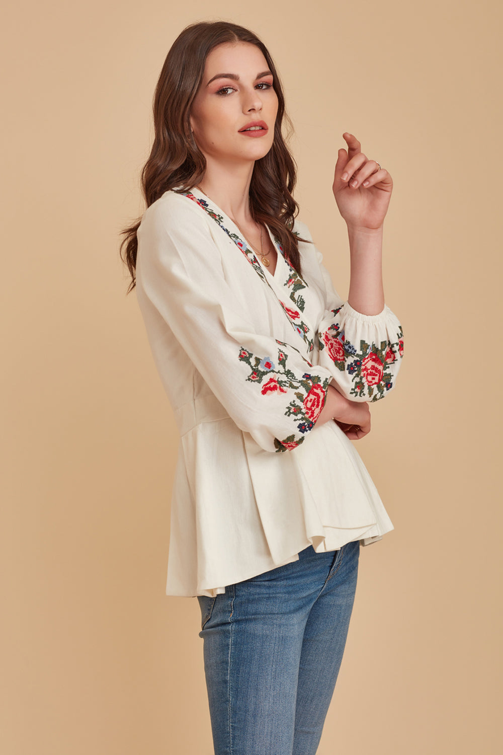 A study in sartorial sophistication, this artfully embroidered blouse is sure to catch the eye of all you meet. The embroidered finish is unique for each piece, ensuring a head-turning statement that is wholly your own.