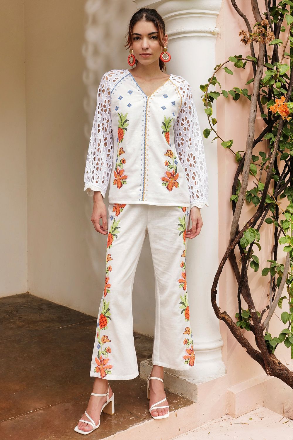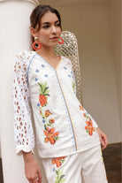 You can keep flowers alive inside your wardrobe year around.The soft garden embroidered coord blouse is here to prove that you can bloom in this easy breezy blouse. You just need to invite fresh shoes and cool accessories to complete flowerful state of mind.