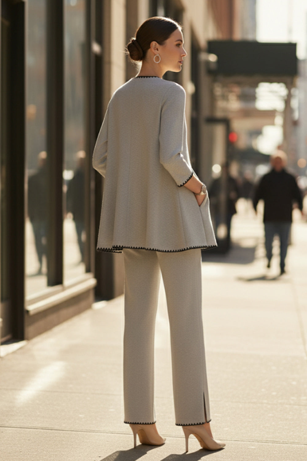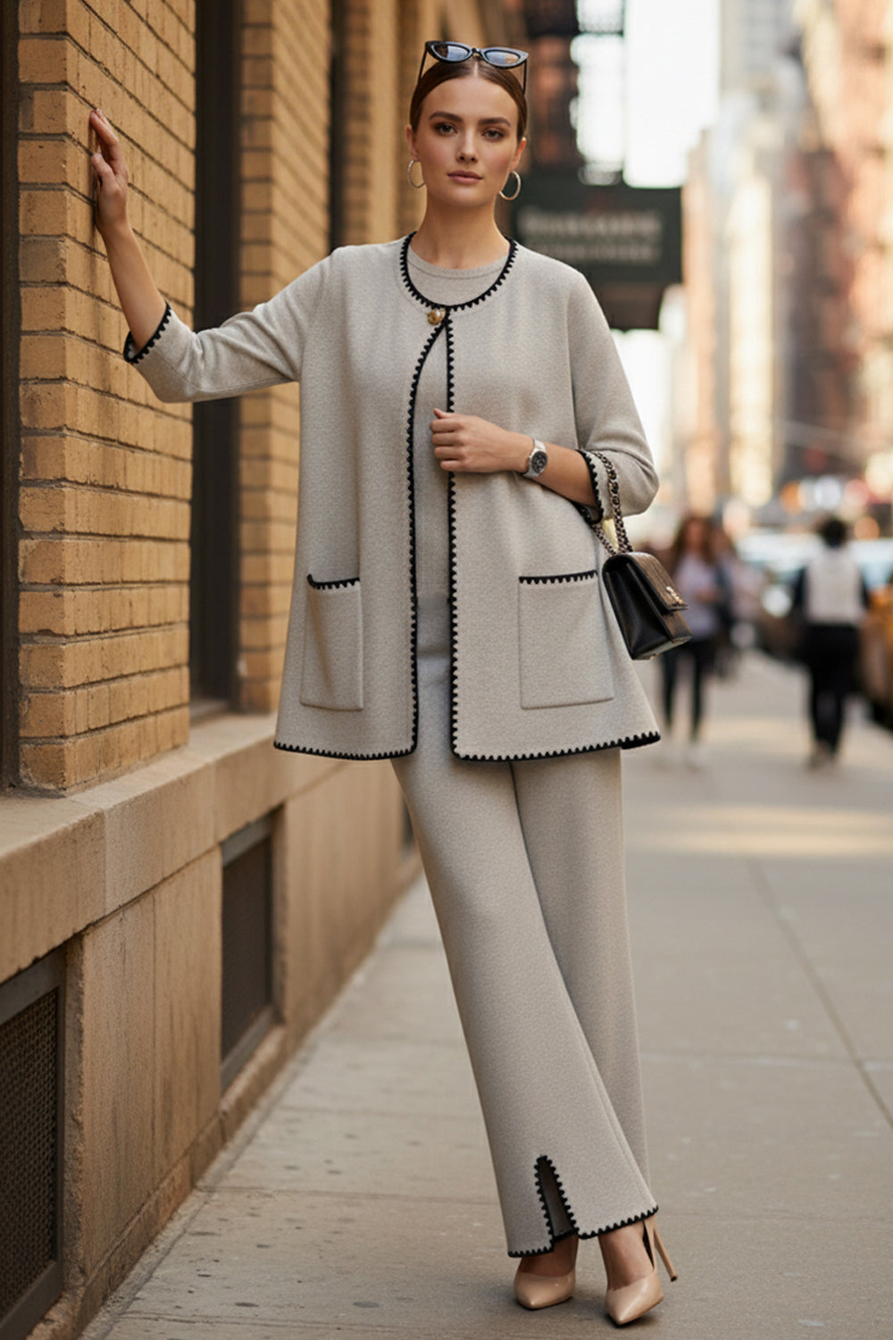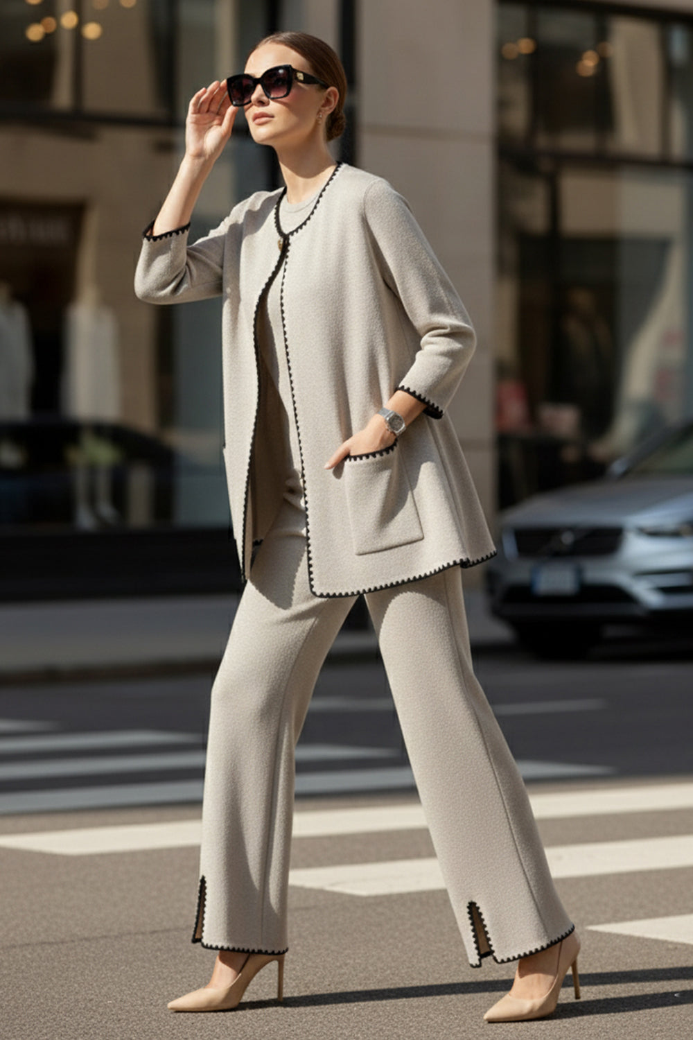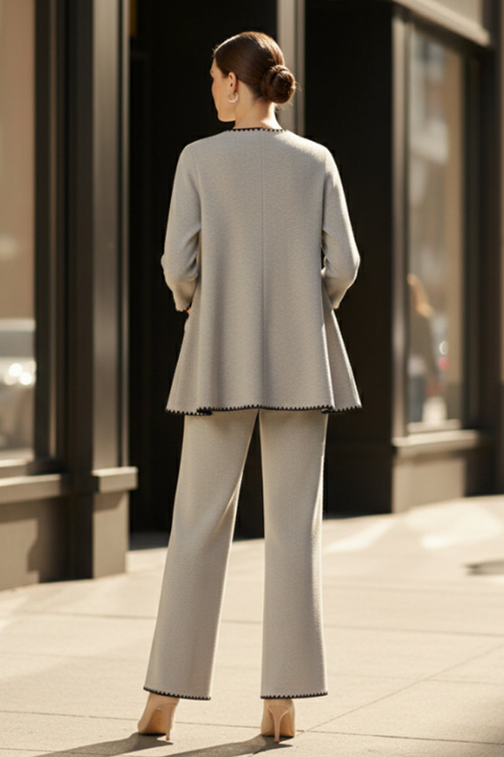 Classic 2 pc matching set with contrast woven stitch all over the hem, must have to keen you warm for the winter days.