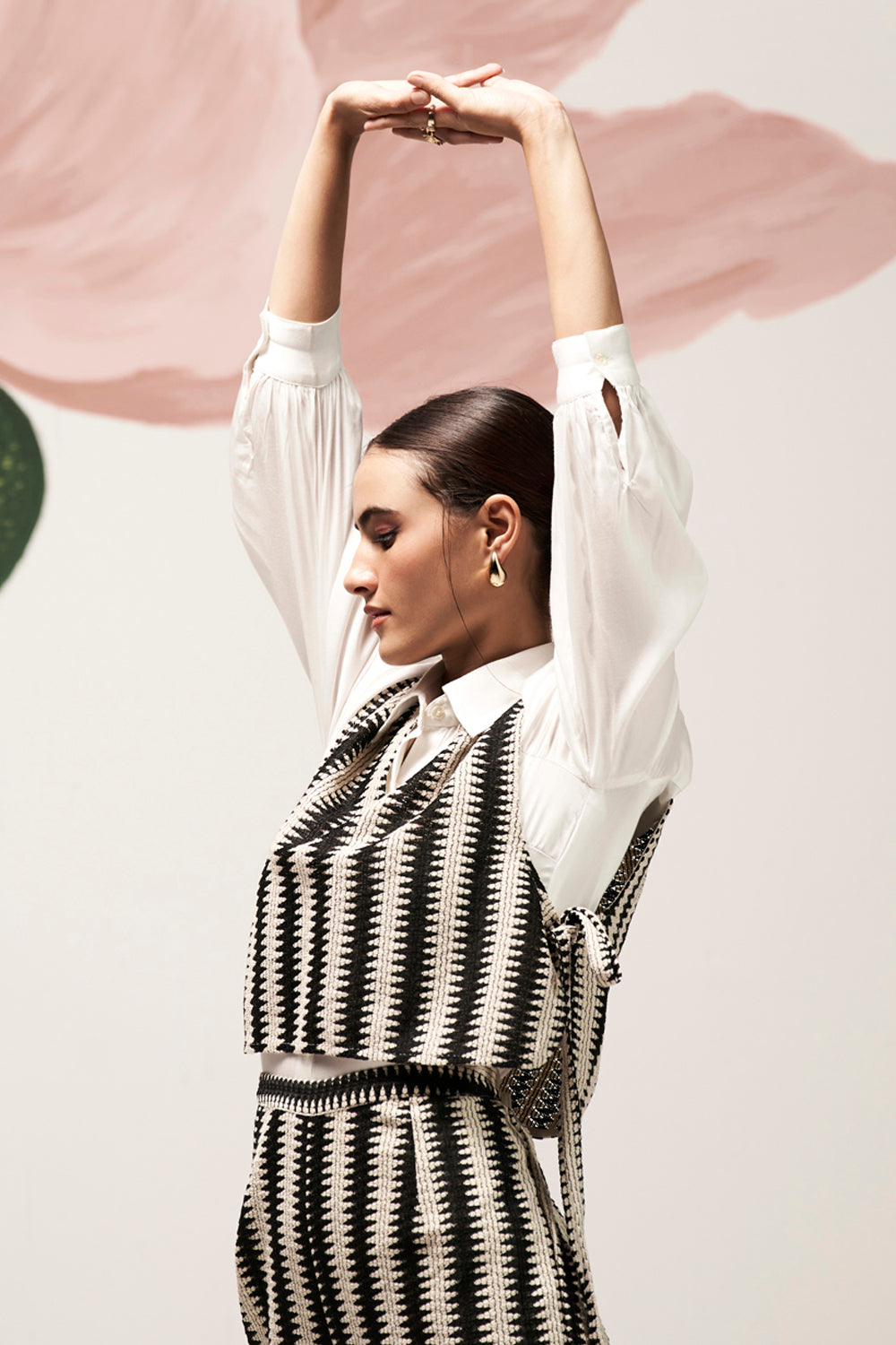 The three piece co-ord set crafted in exquisite cotton crochet is a Boho Chic exclusive.
