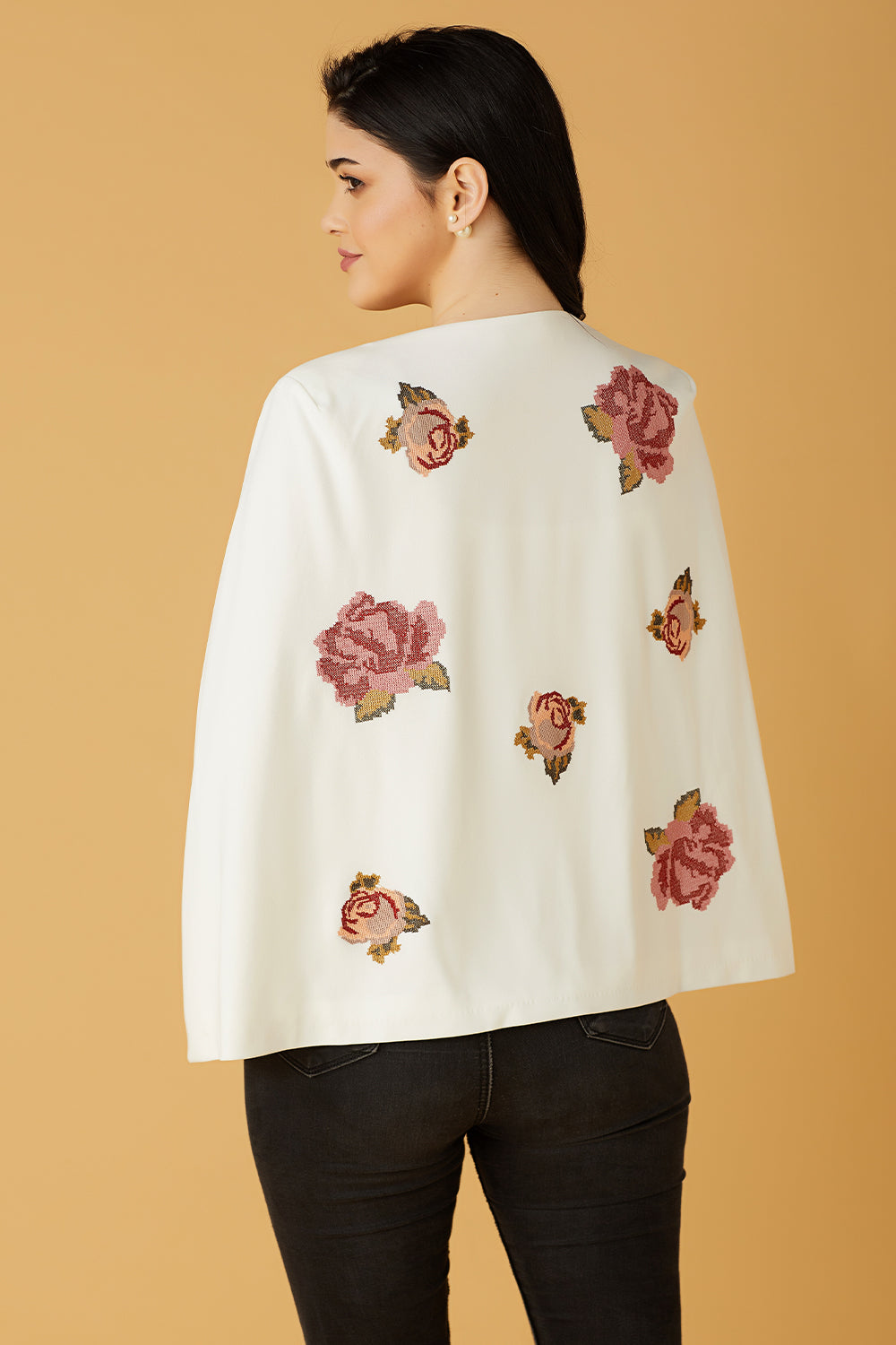 Refresh your wardrobe with this dreamy floral embroidered cape. Sophisticated and utterly wearable design-beloved by women of all stylish sensibilities