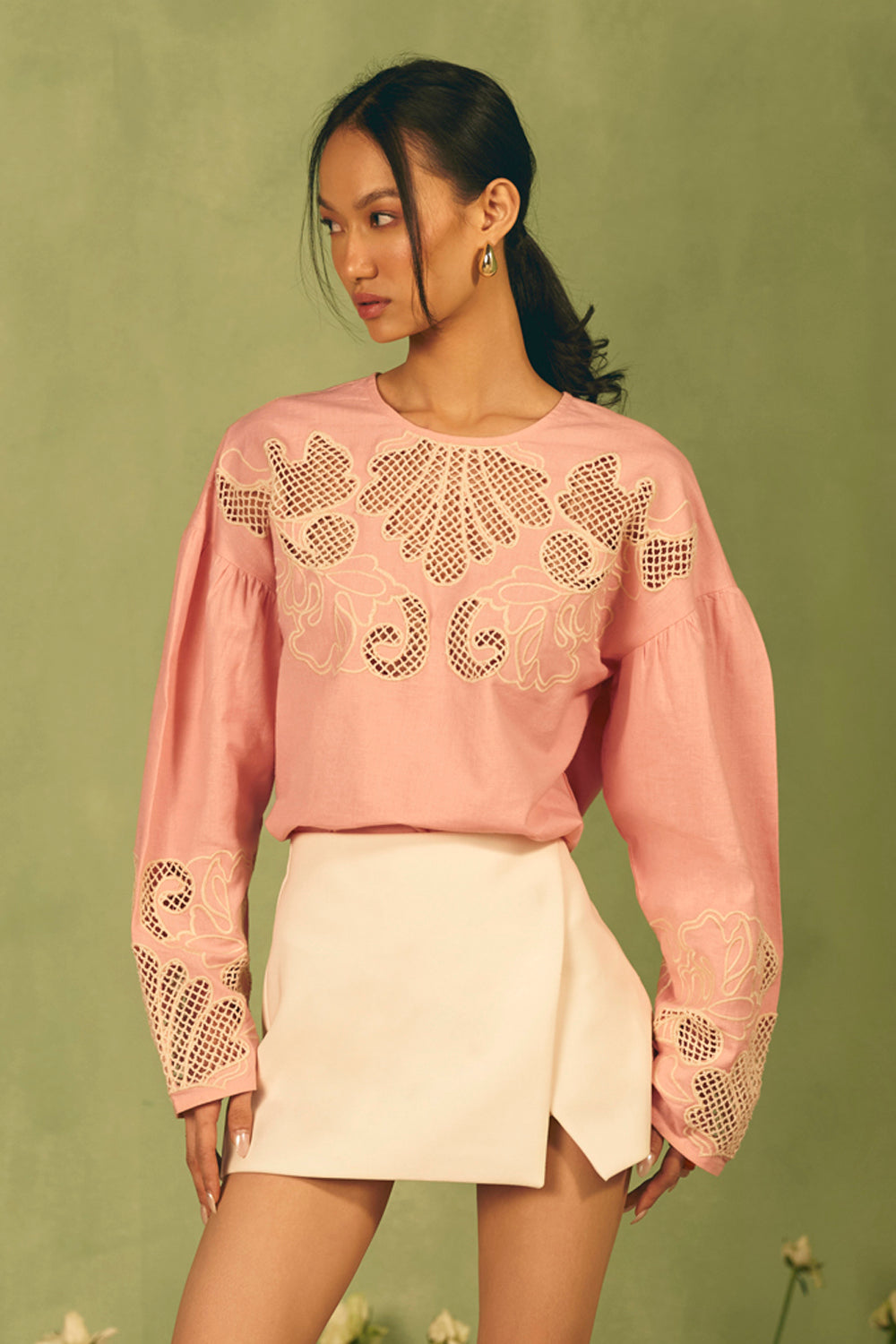 Flamingo Cutwork Embroidered Blouse
