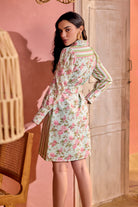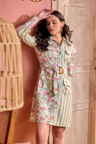 Dainty flower print and pastel stripped button down dress, finely crafted and finished with pipping trims all across dress. It's a must have for summer brunch and vacation friendly.