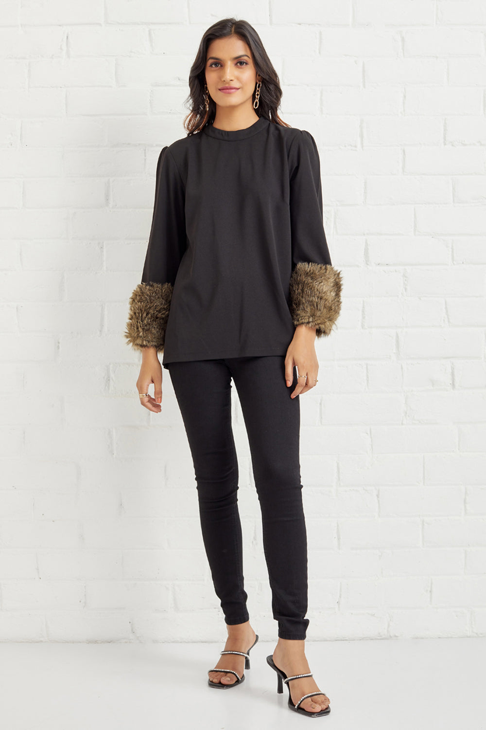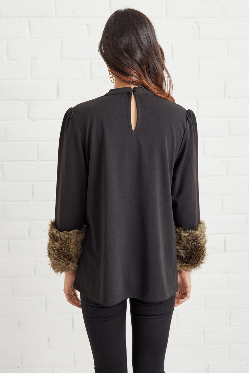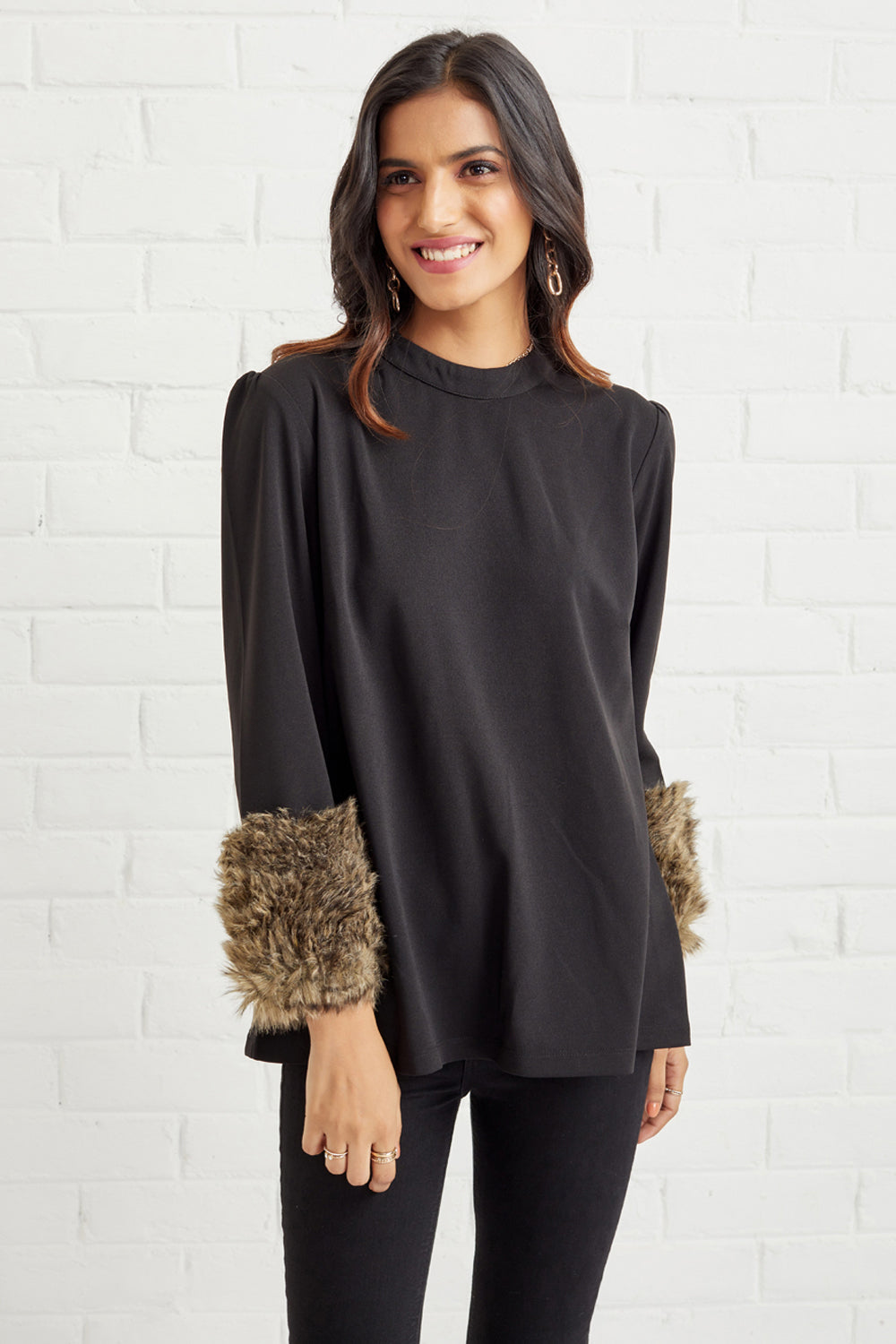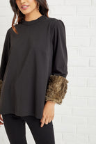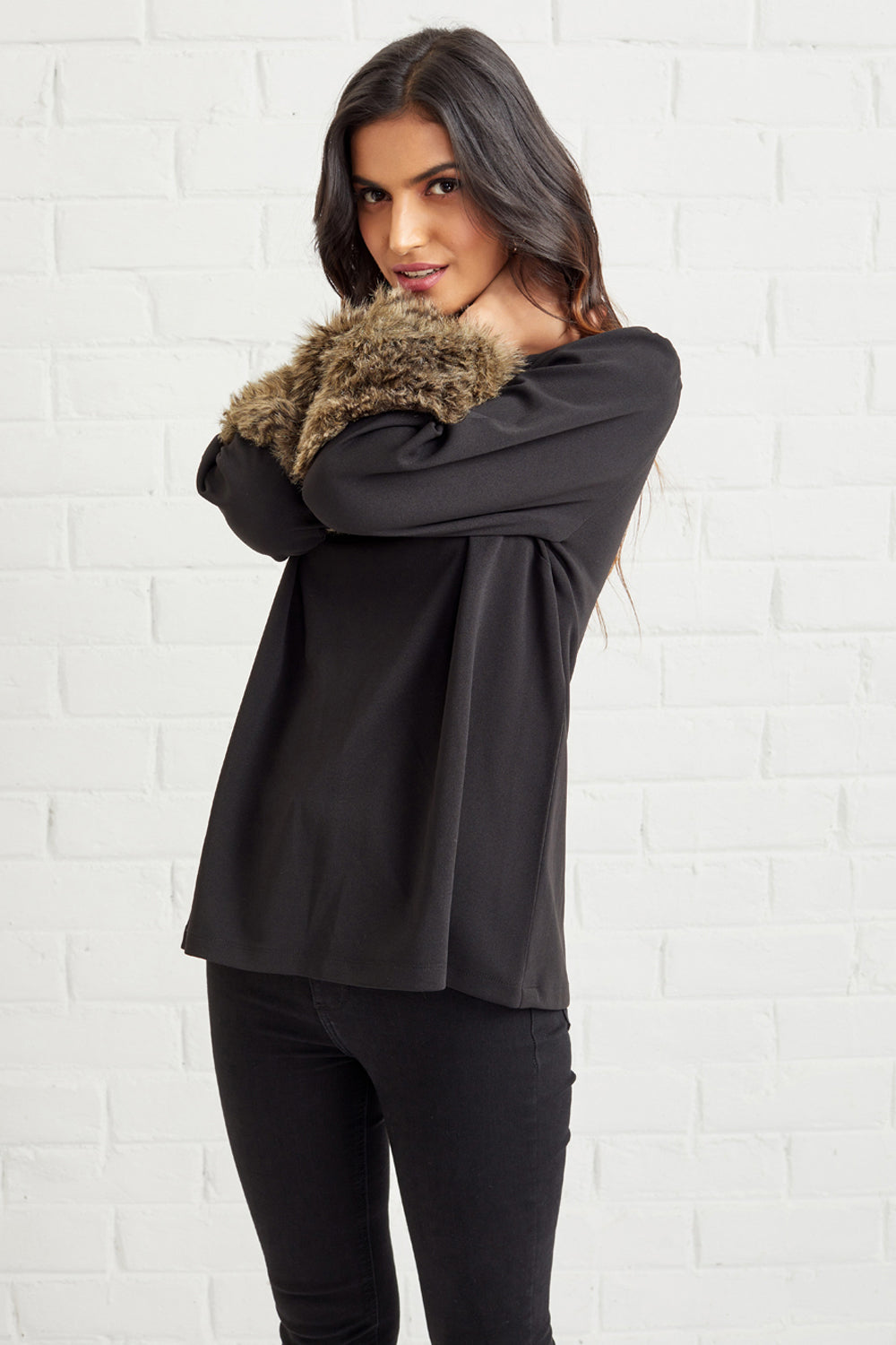 Featuring faux fur-trimmed sleeved top. An absolute must-have in your wardrobe. We love pairing this with distressed denim for a look that's oh-so chic.