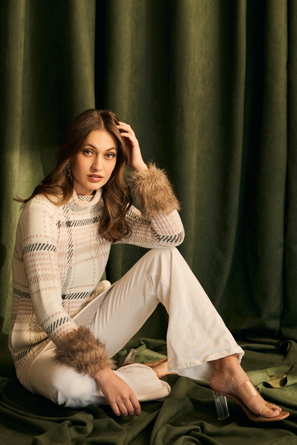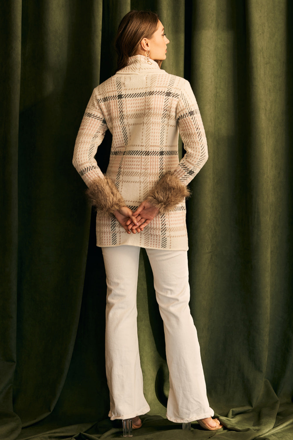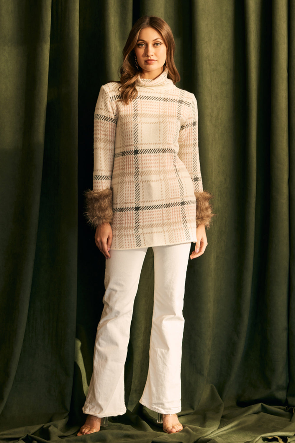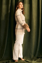 Fur Trimmed Plaid Knit Jumper