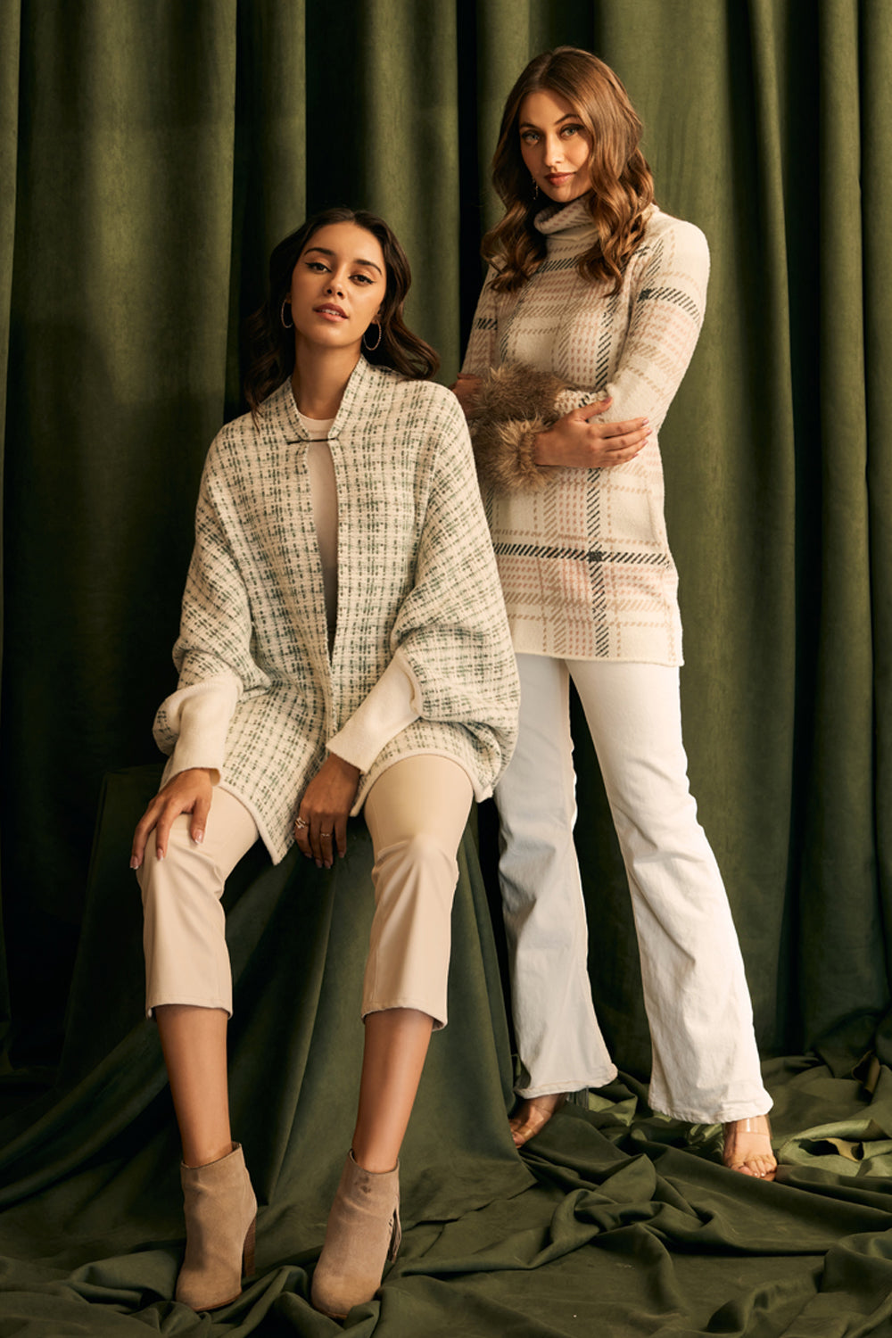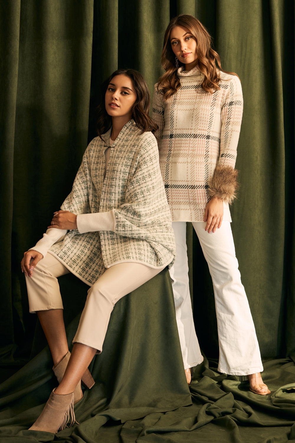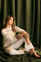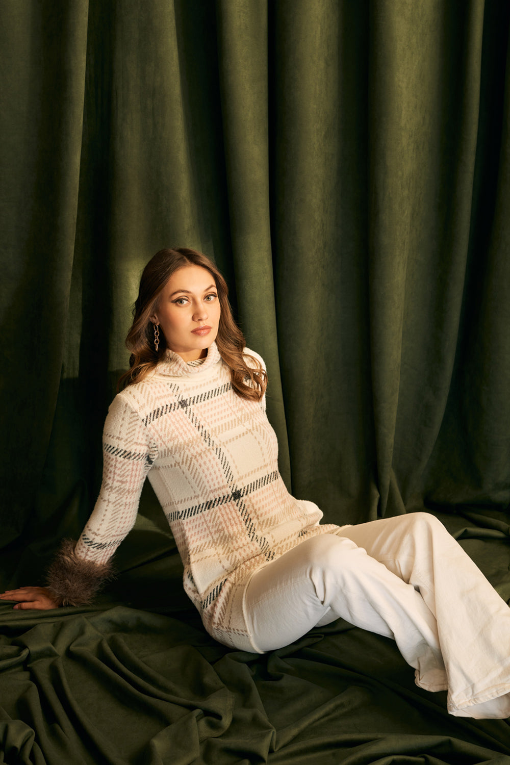 Fur Trimmed Plaid Knit Jumper