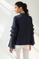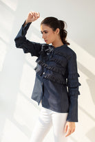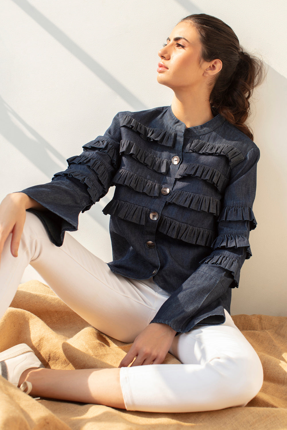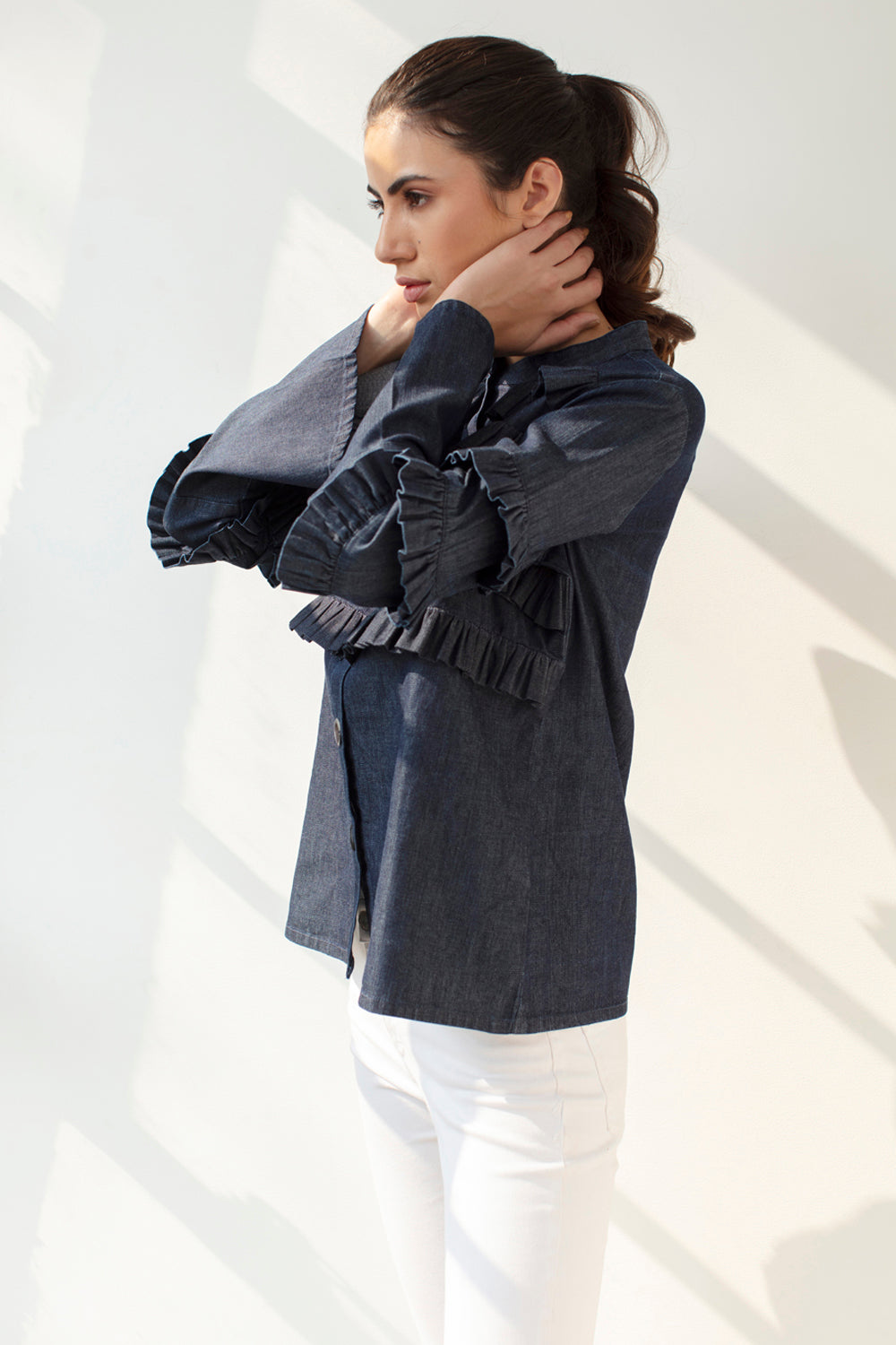 Denim ruffles and oh so chic.This collection is structured yet delicate. A representation of beauty and strength at once.