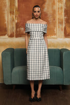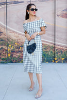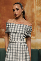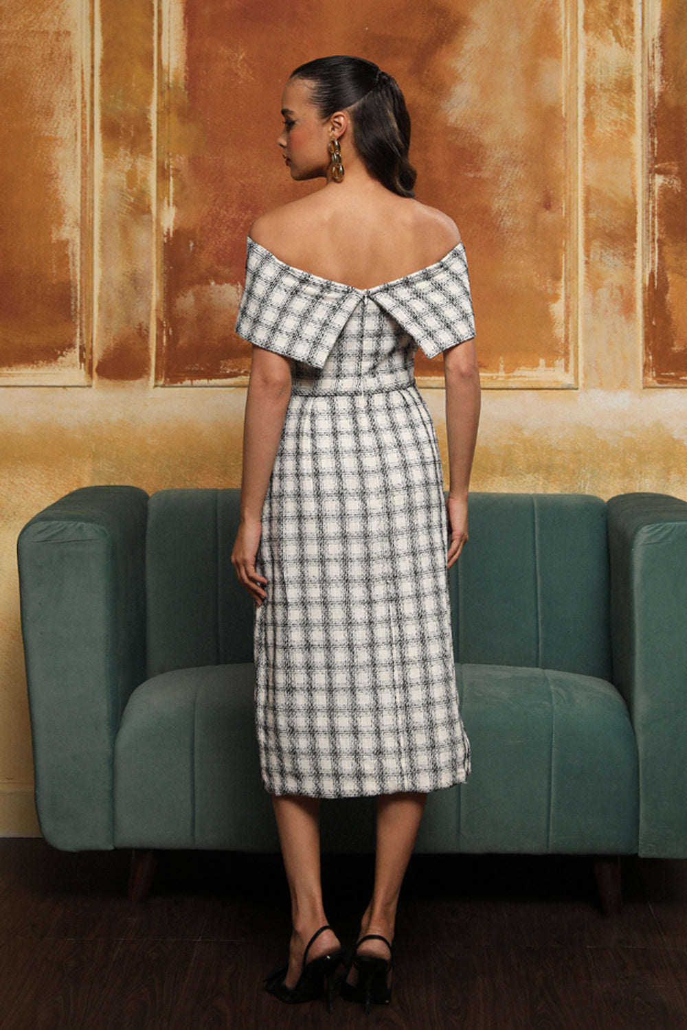 Sharnamli In Our Off the Shoulder Tweed Midi Dress