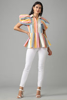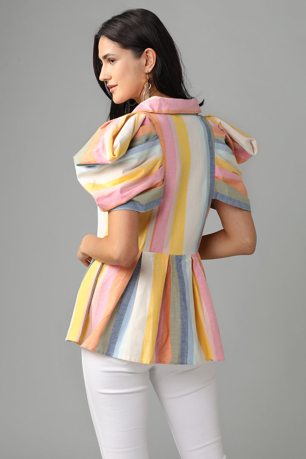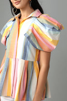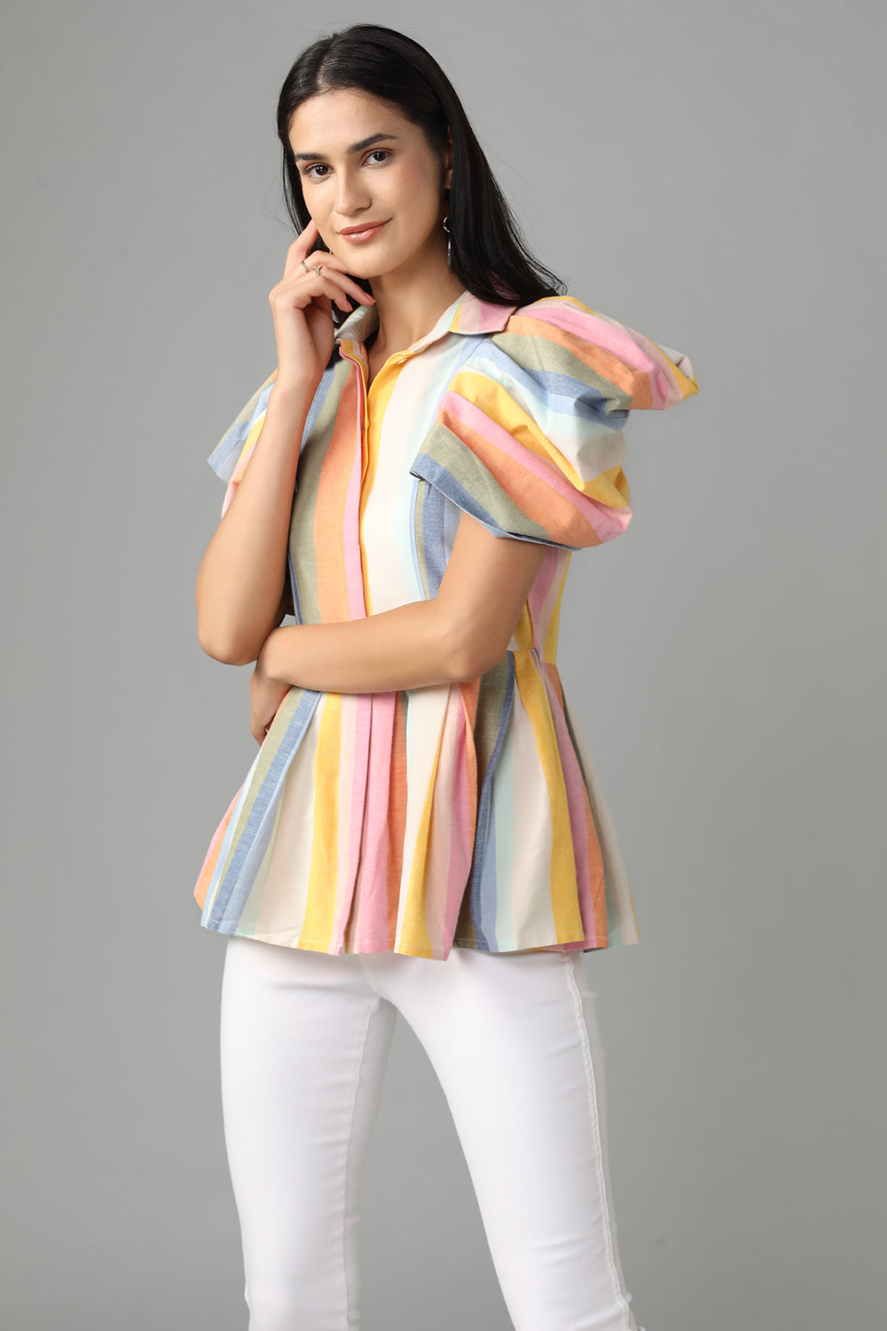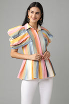 Striped Peplum Shirt With Flattering Sleeve